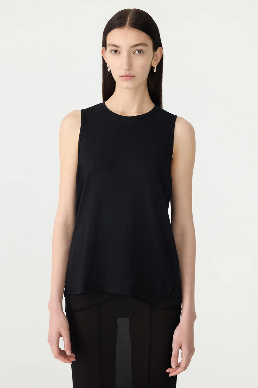 Crafted from organic cotton single jersey knitted in Australia, the Fine Bind Athletic Tank is designed with a classic straight silhouette. Featuring fine binds at the armholes and neckline, side hem splits for ease and finished with contrast chainstitch detail at the back.