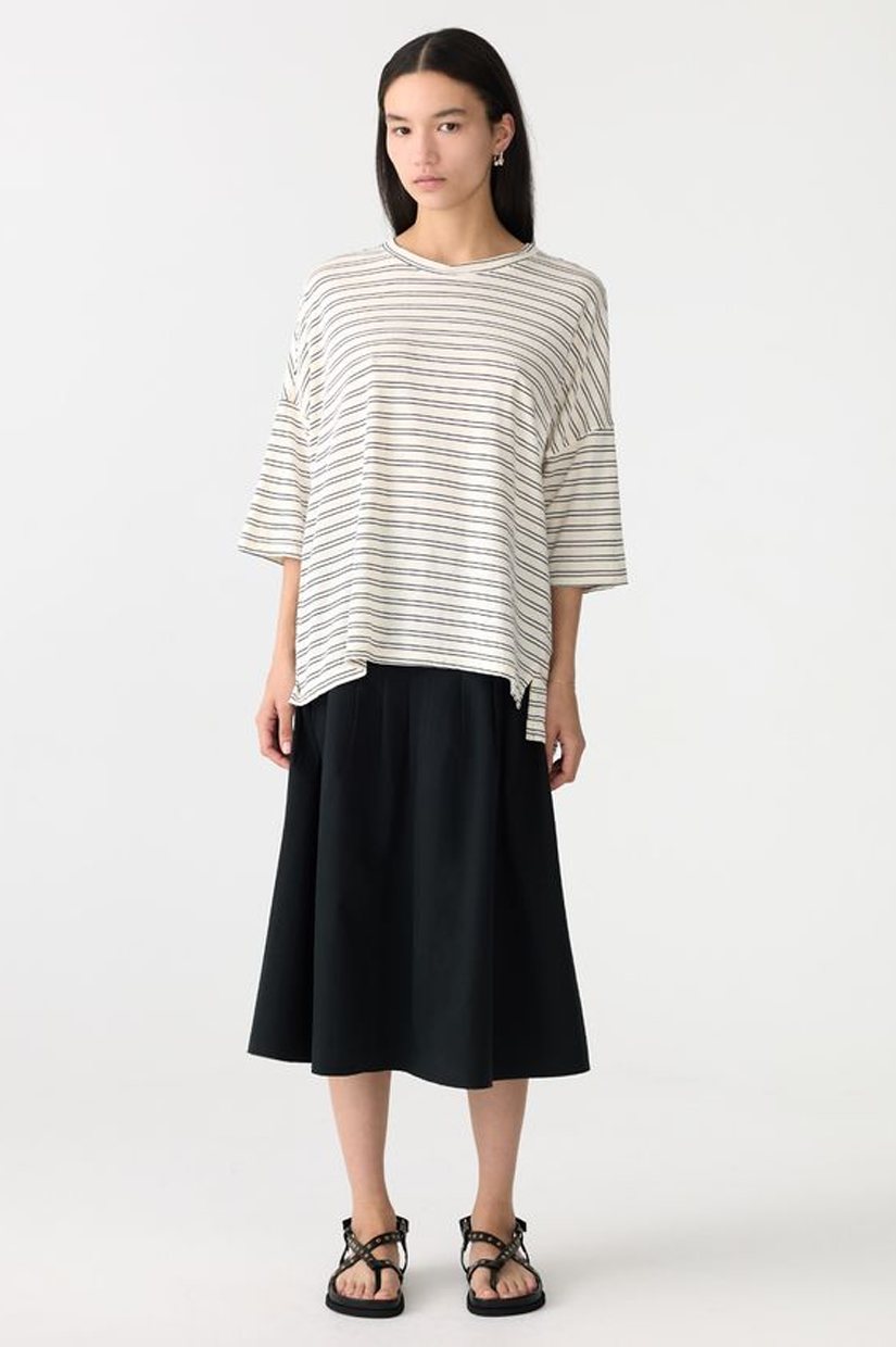 Bassike Stripe Slouch T-shirt Black/White/Undyed