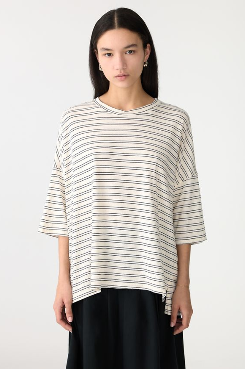 Bassike Stripe Slouch T-shirt - Black/White/Undyed