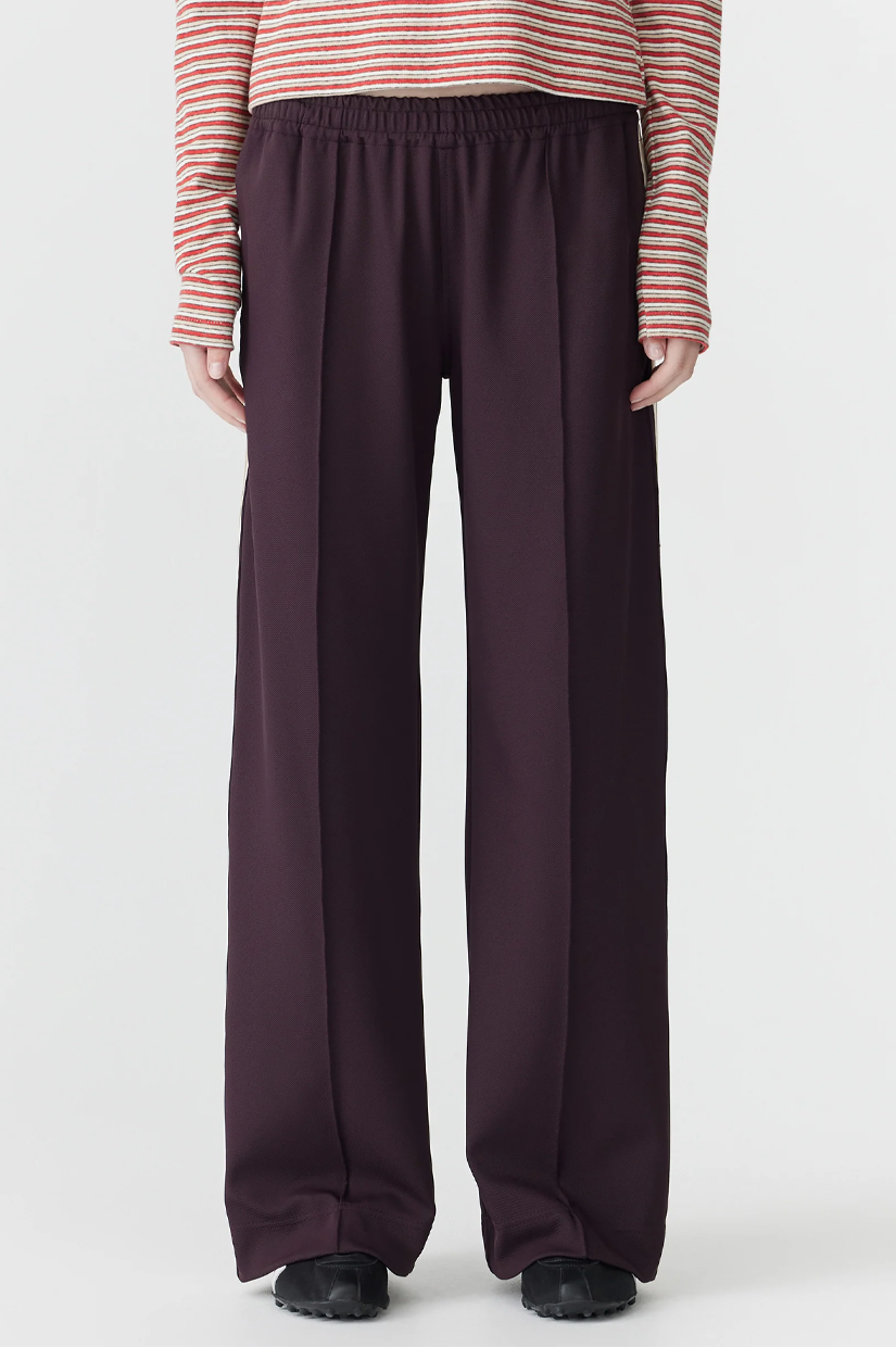 Bassike Wide Leg Athletic Tape Pant - Dark Plum