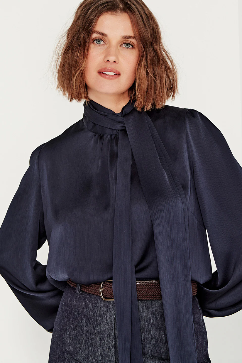 Malina Zora Barrel Sleeve Satin Blouse - Amber