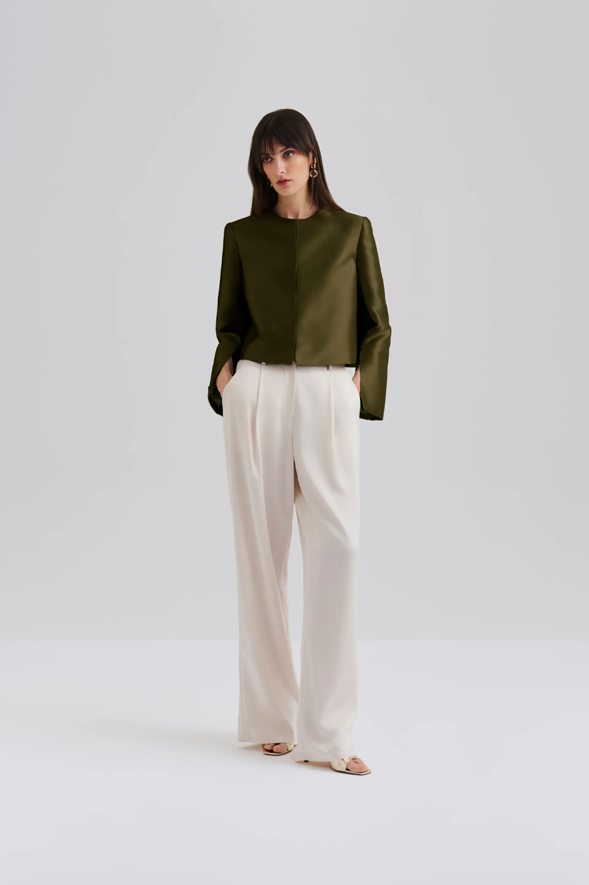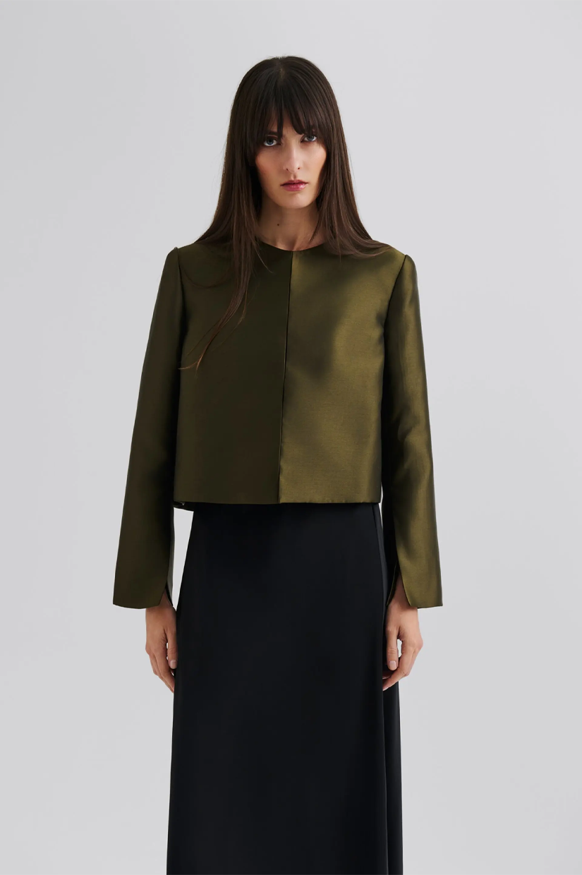 Malina Ruthie Cropped Long Sleeve Blouse Olive