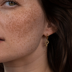 In celebration of our 20th Anniversary, we've reimagined a beloved classic, creating the Mini Gypsy Heart Hoops. These gold earrings feature a miniature heart pendant, gracefully suspended from a beautifully textured hoop. They gently sway, capturing the essence of bohemian grace and timeless romance.