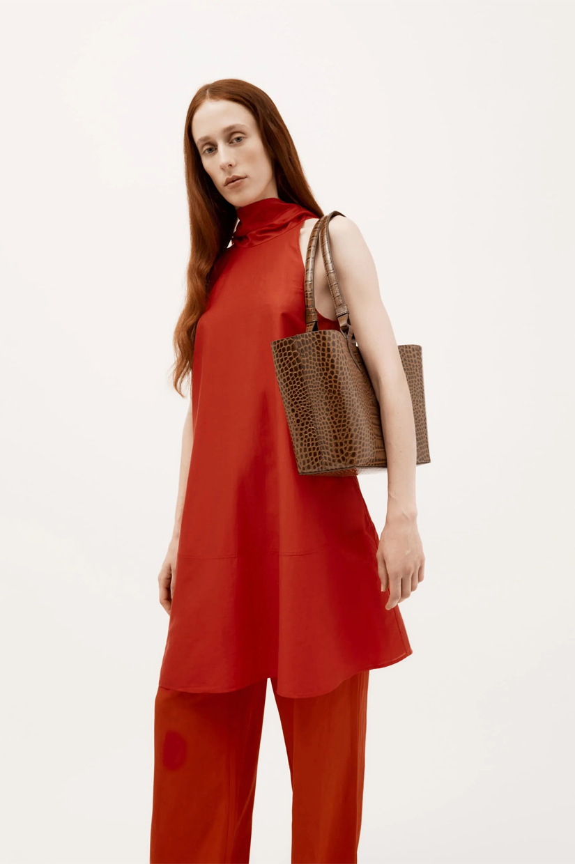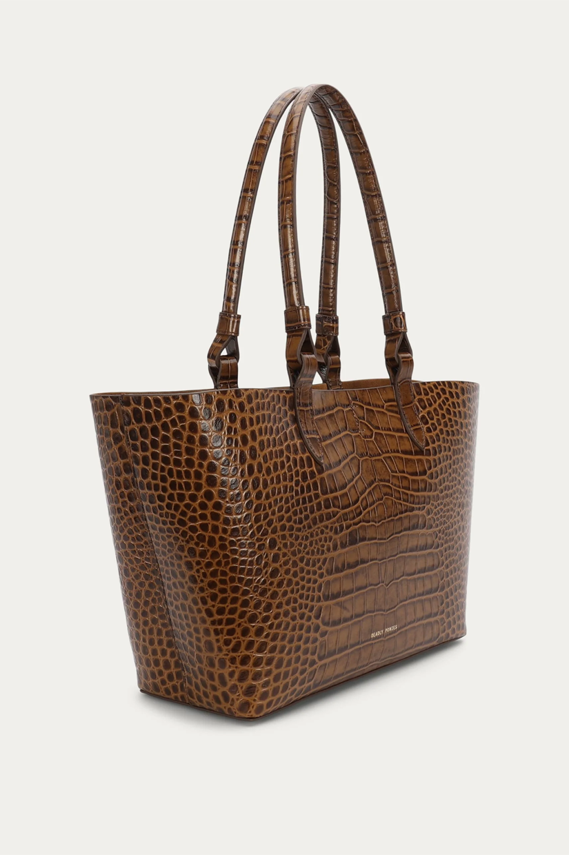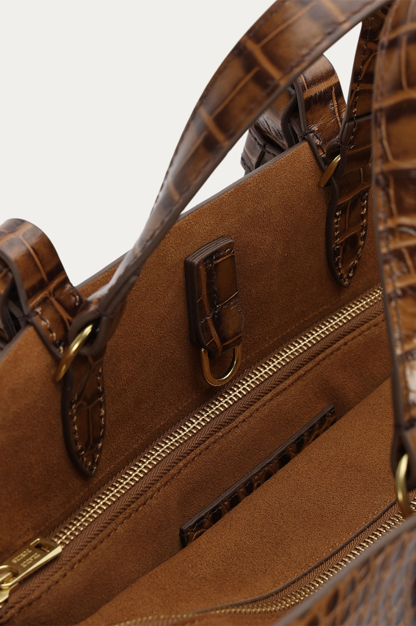 Mr Bandit Tote in Toffee is crafted in LWG-certified Croc-Embossed Calf Leather with a Gingerbread Suede interior. Carry him by hand or on the shoulder with collapsible short and long leather loop handles.