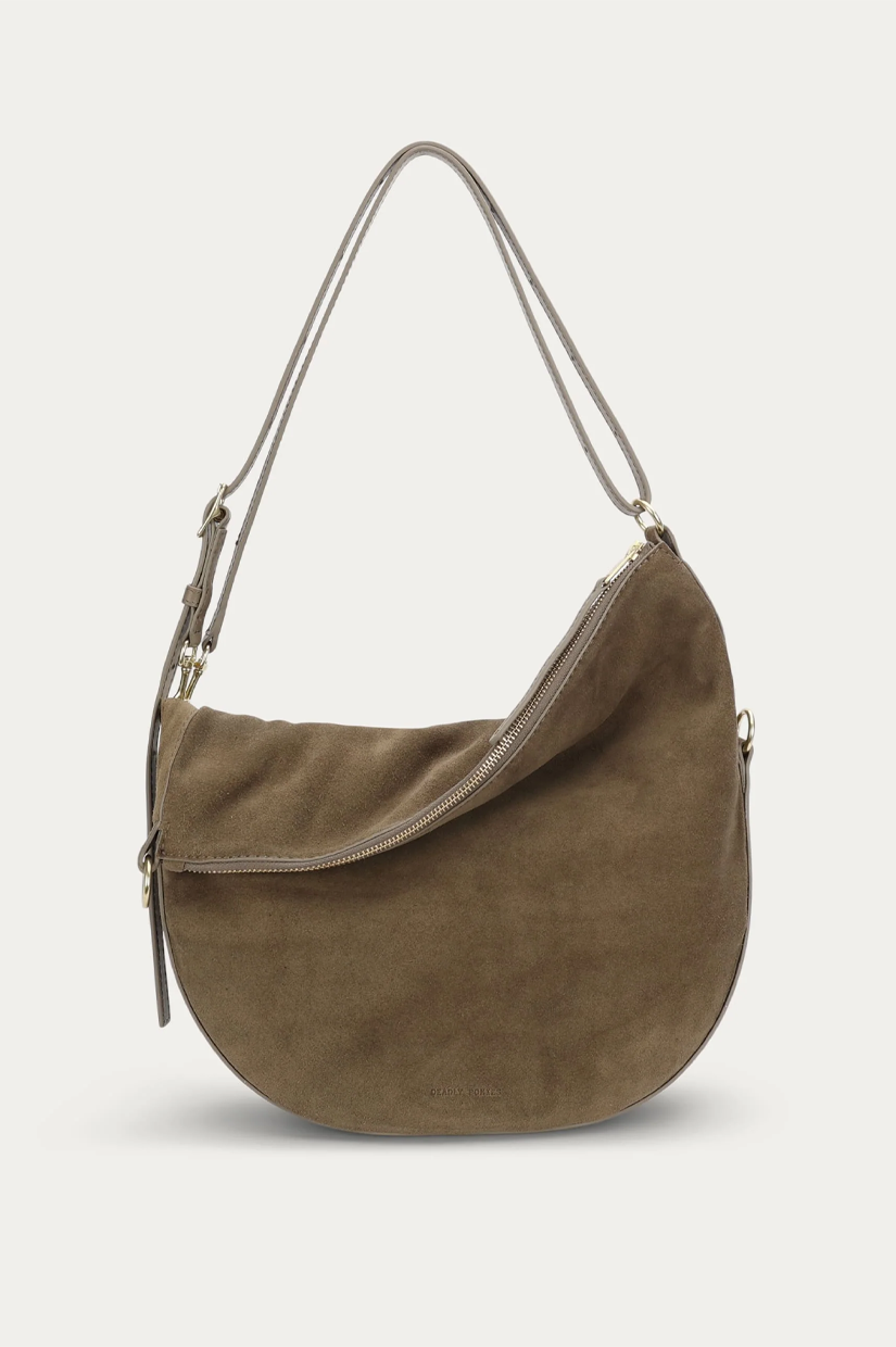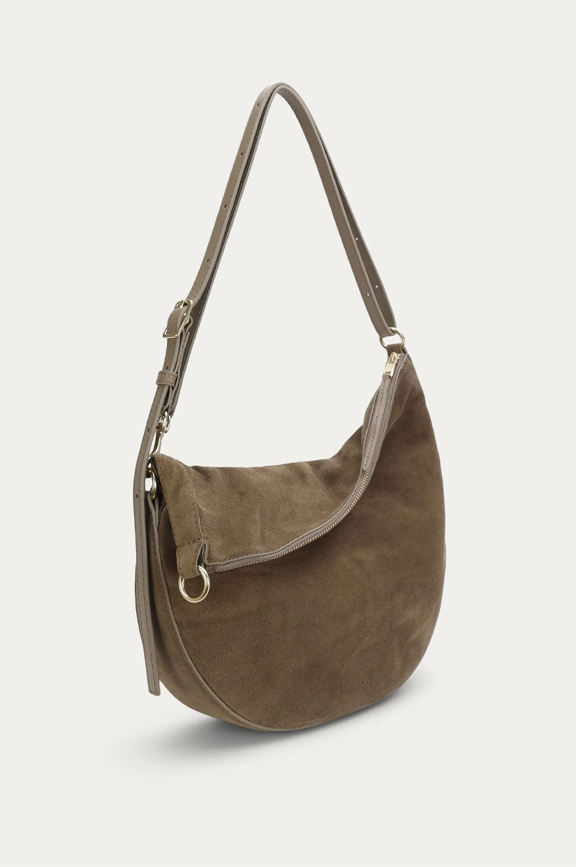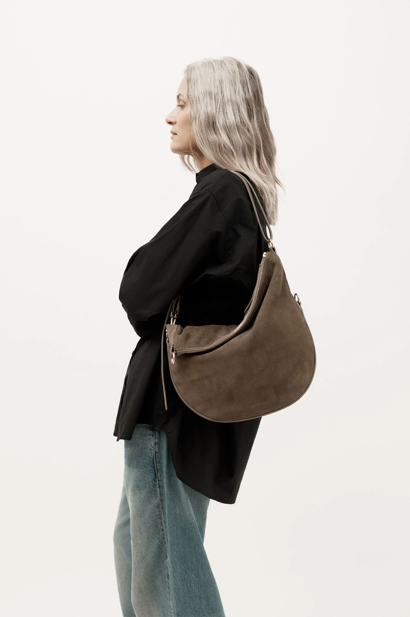 Mr Leopard in Dune Suede is crafted from sumptuous LWG-certified Calf Suede. This versatile silhouette can be worn folded, asymmetrically, or fully extended as a sling. He offers seamless options for crossbody or shoulder wear.