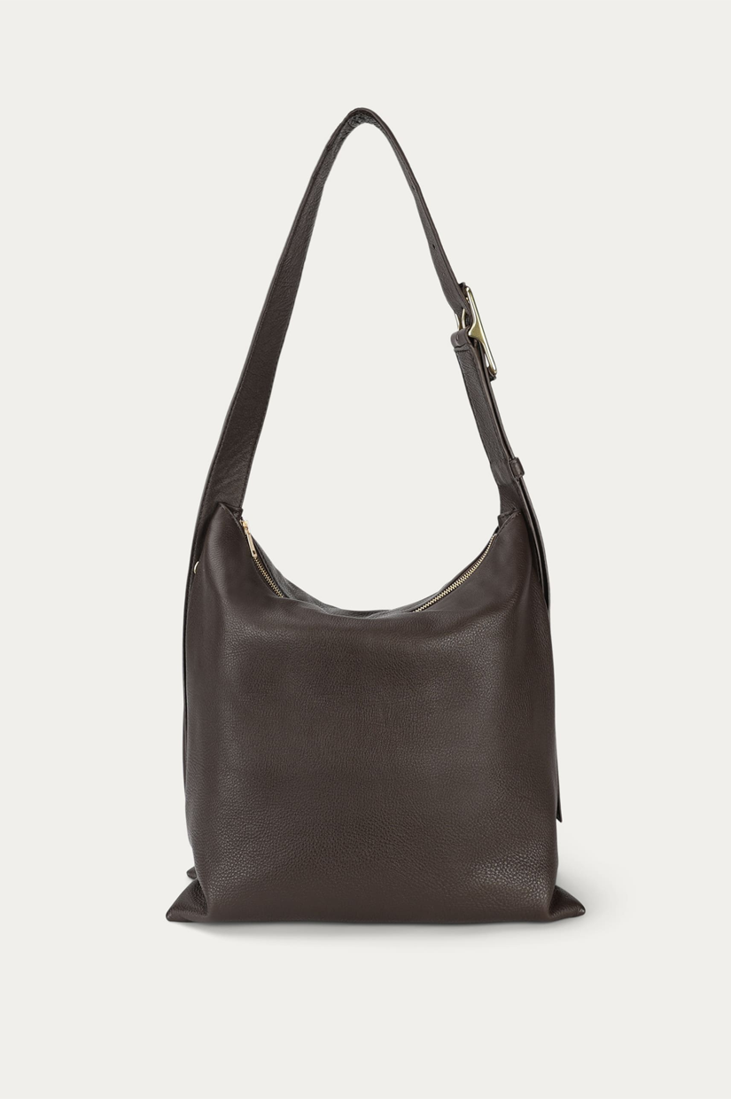Mr Maximese, in Java LWG-certified Calf Nappa, is a roomy shoulder bag with a relaxed slouchy shape. Complete with an adjustable strap, oversized brass buckle, zipped gusset details, and interior zip and slip pockets.