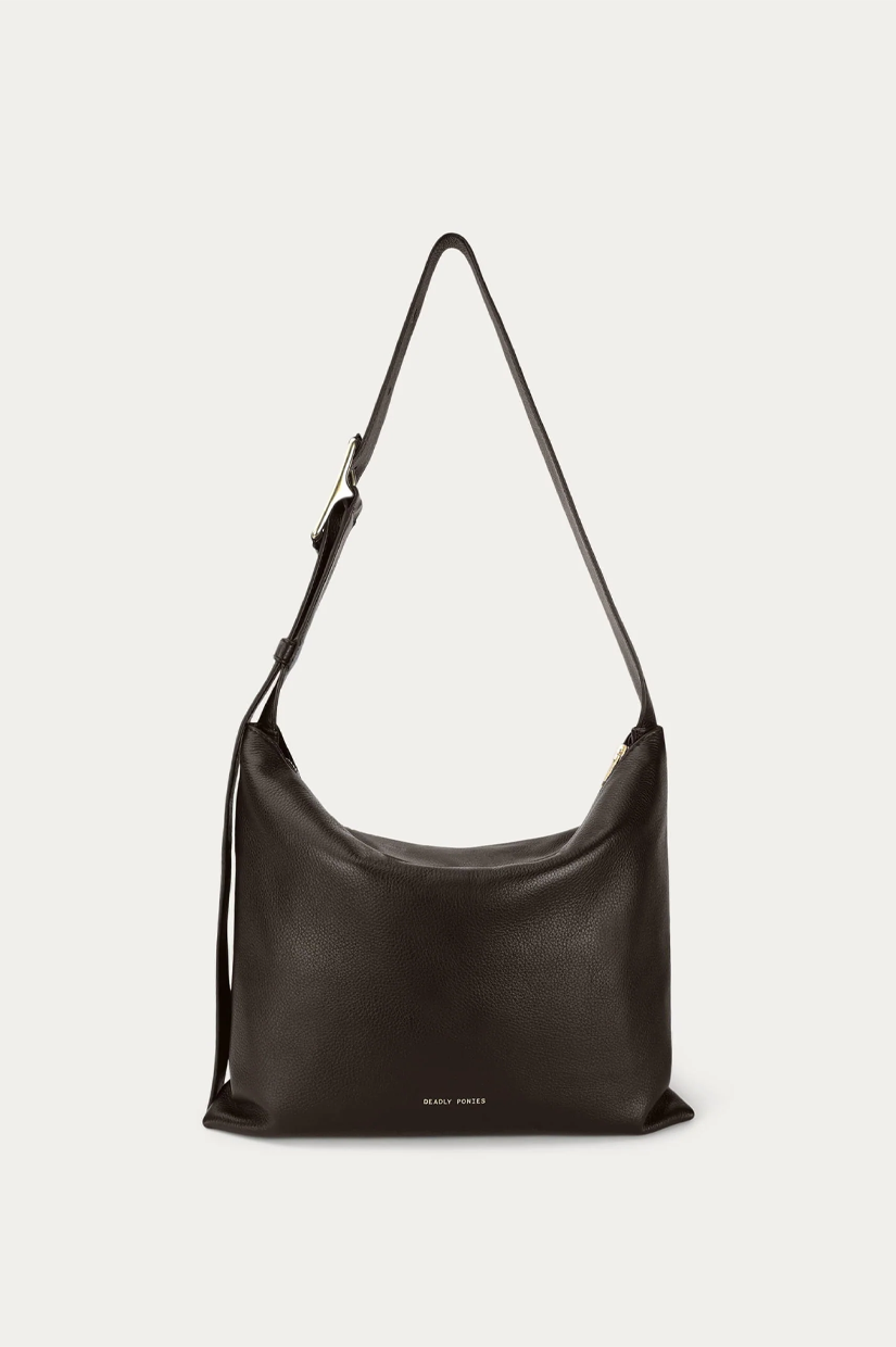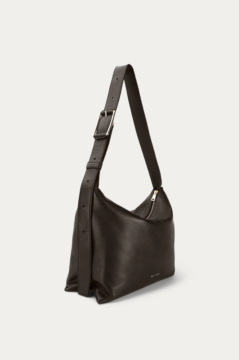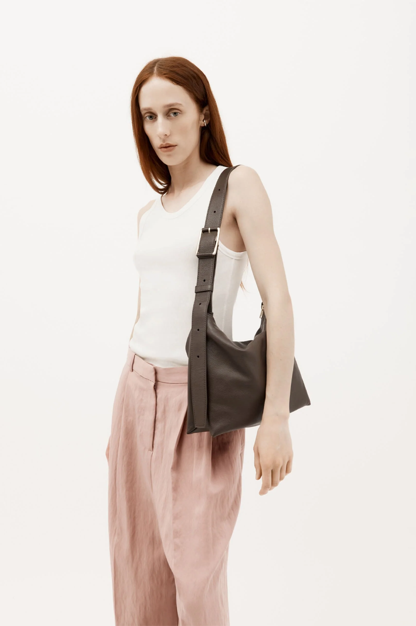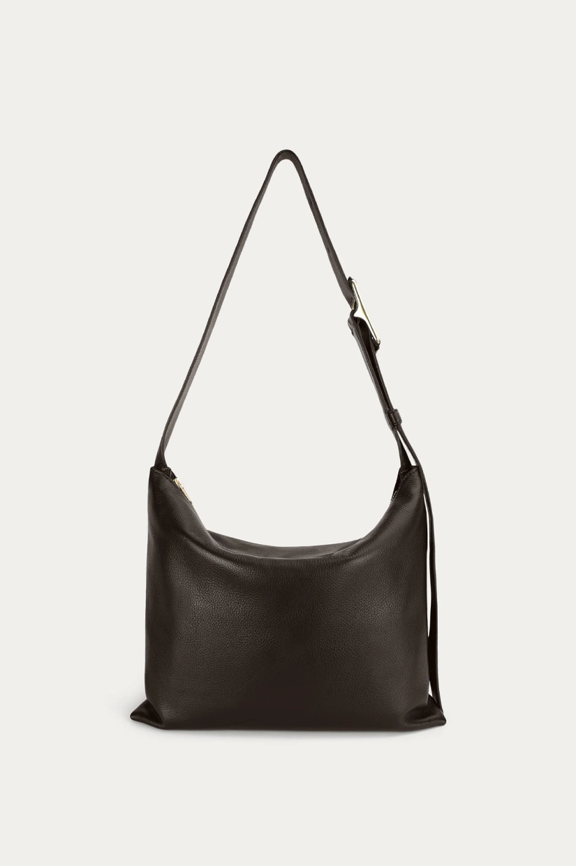 Mr Midimese in Java is crafted from our signature LWG-certified Calf Nappa. This shoulder bag features a slouchy exterior, zip closure, adjustable strap, and a brass buckle. Inside, he offers two slip pockets, a zip pocket, and an internal key clip for added practicality.