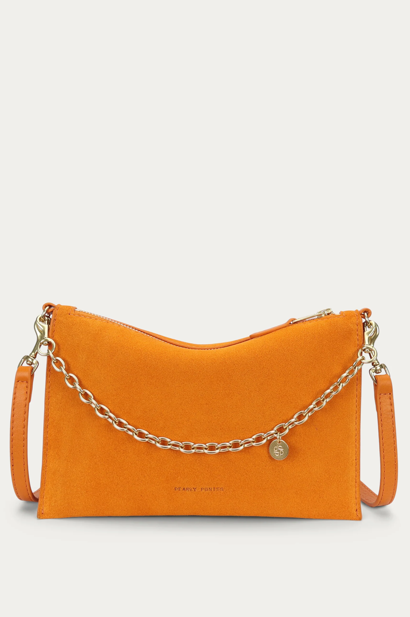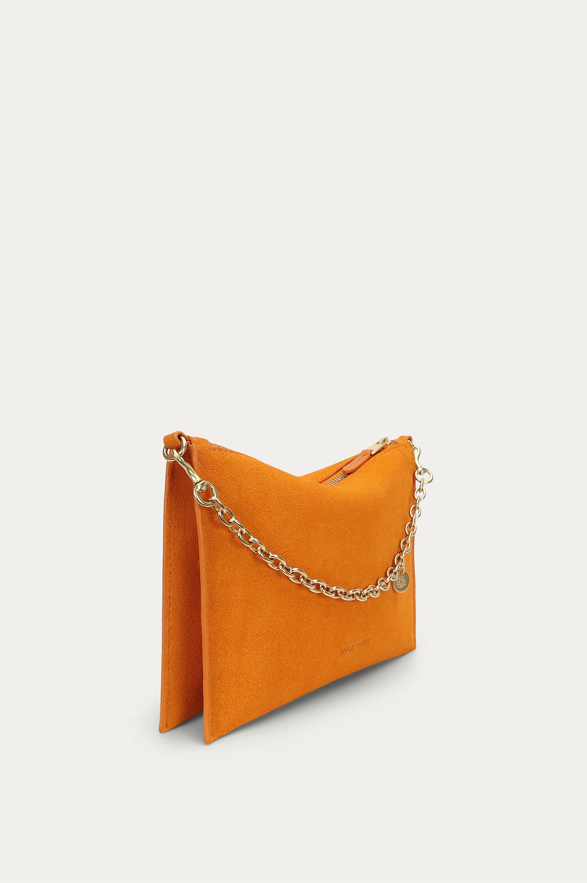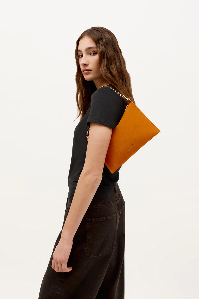 Intricately crafted from a single piece of soft Calf Suede in Marmalade, Mr Siamese is defined by a sleek, streamlined silhouette. With a detachable solid brass chain and adjustable strap, he transitions effortlessly from clutch to shoulder or crossbody wear.