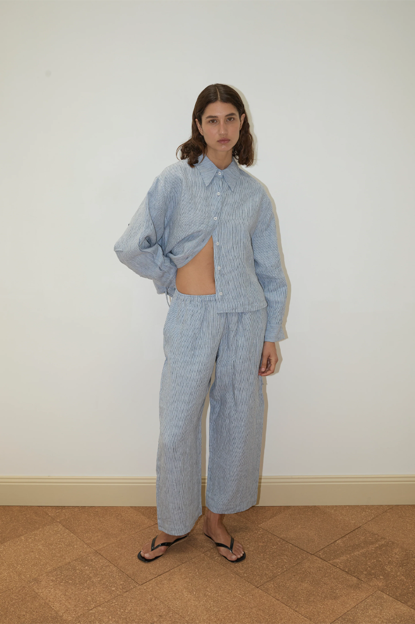 Deiji Studios creates effortlessly oversized, breathable linen pieces that blend comfort with sophistication. Designed for ease and versatility, their refined silhouettes transition seamlessly from home to everyday wear.