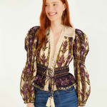 Farm Rio Long Sleeve Blouse Embroidered Tapestry Sand
