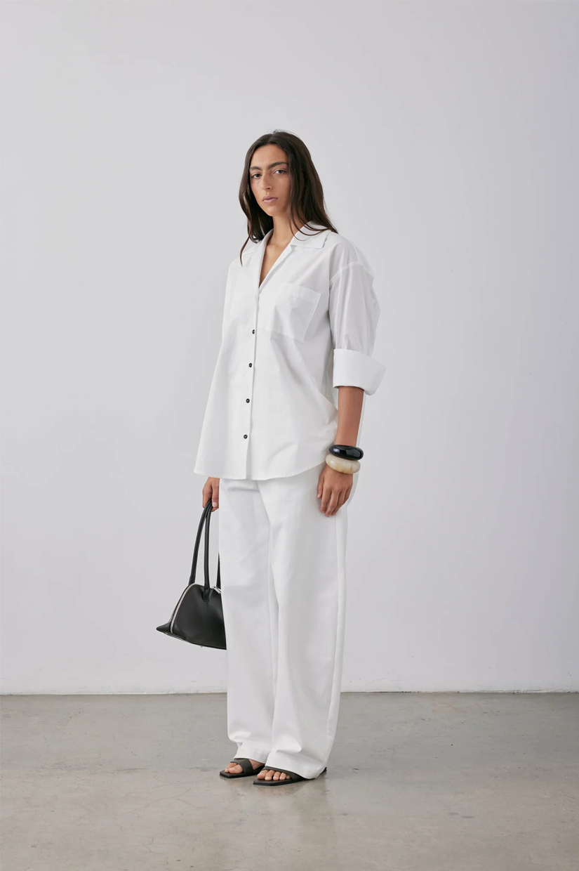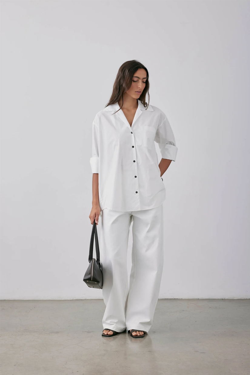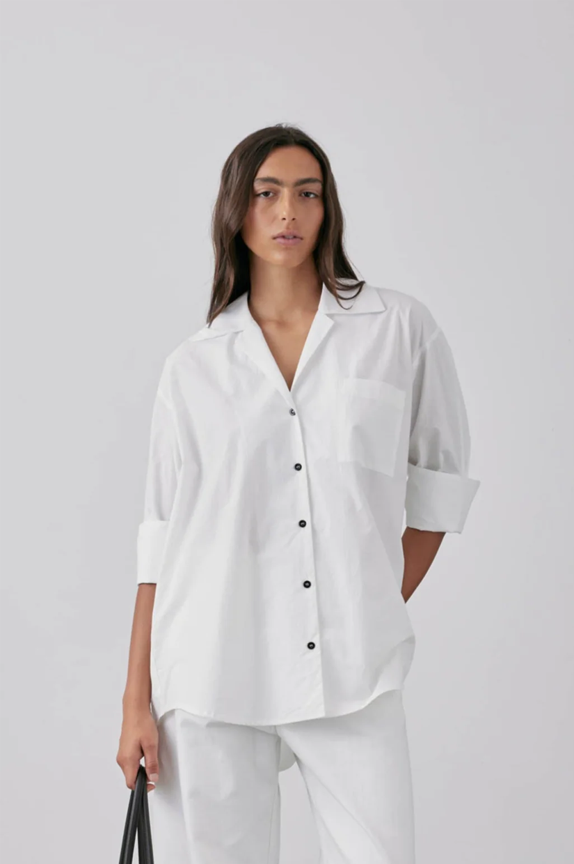 Expertly crafted for comfort and style, the Rae Shirt boasts a spread collar and full button placket, made with crisp Italian coated cotton. The short sleeve with wide cuff adds a touch of sophistication to this versatile wardrobe staple.