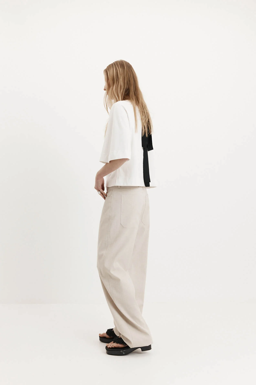 Cut from cotton T-shirting for a relaxed, flowing fit. Featuring a subtle cropped length and an open back secured with a grosgrain ribbon, balancing ease with refined detail.