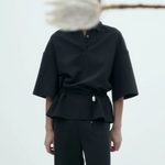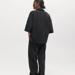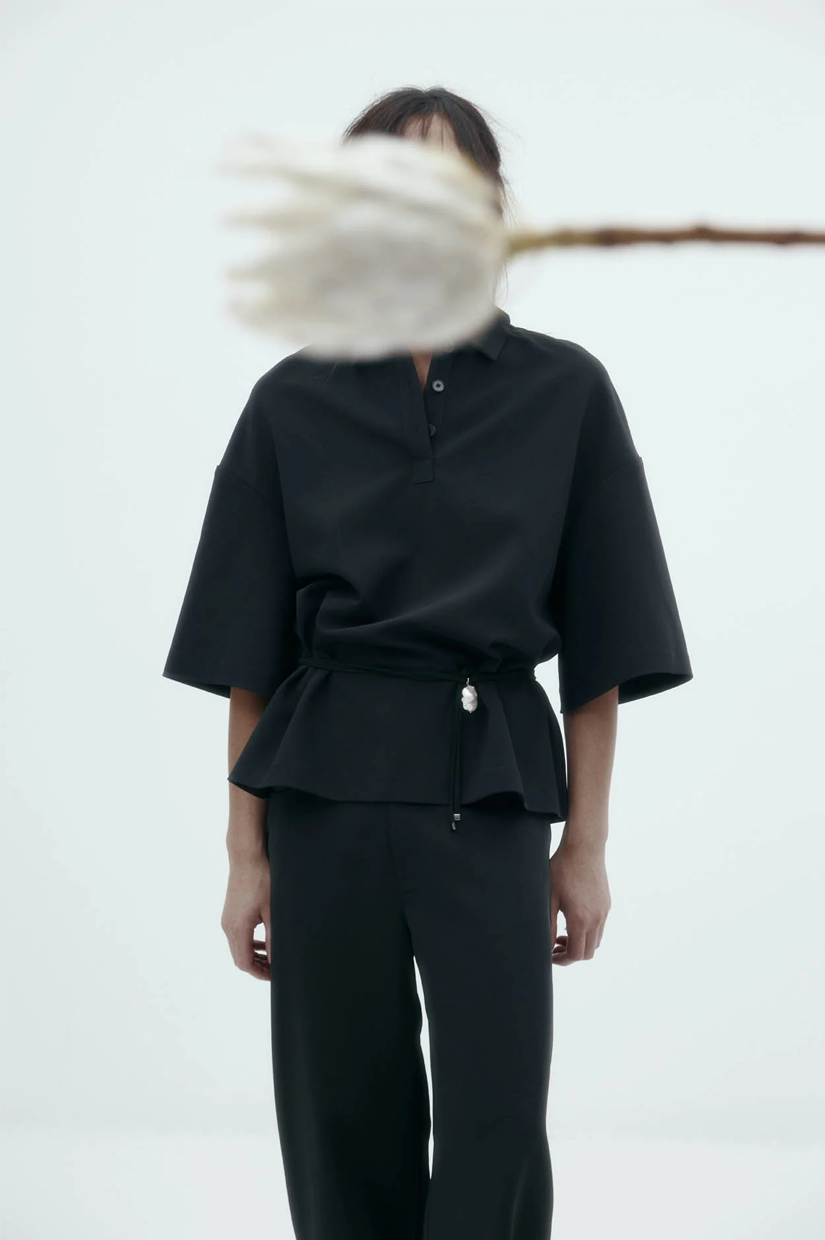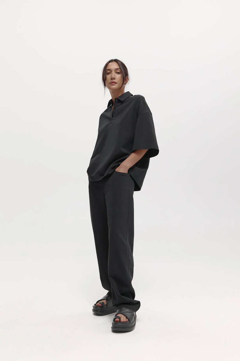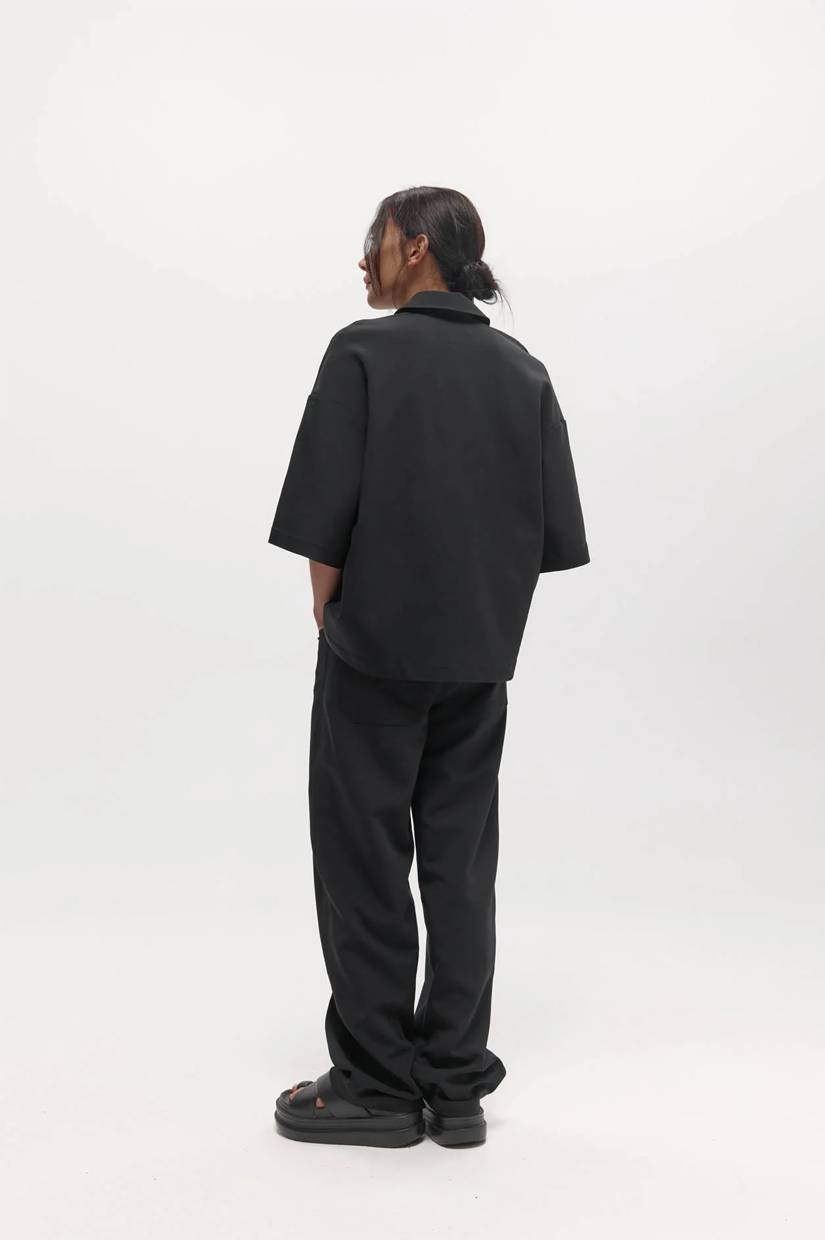 A short sleeve polo with a relaxed silhouette. Features a pointed collar, three-button placket, and dropped shoulders.