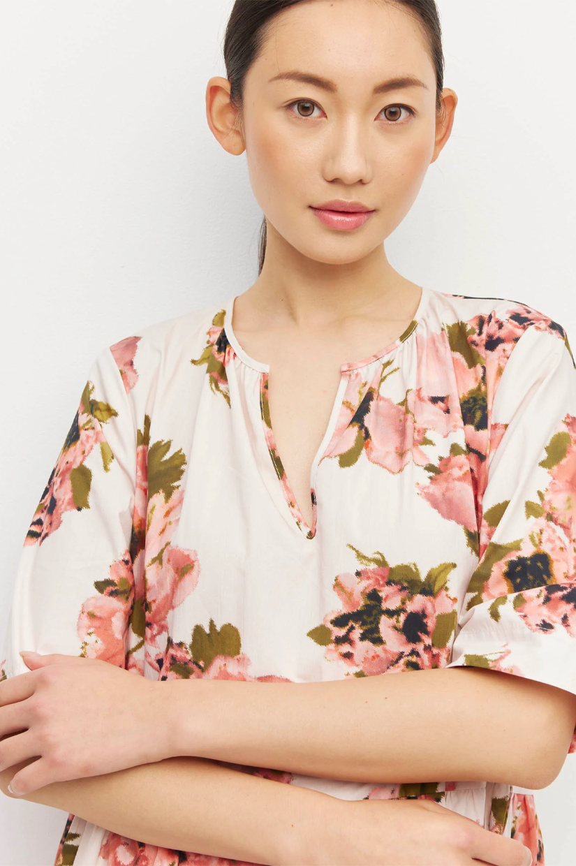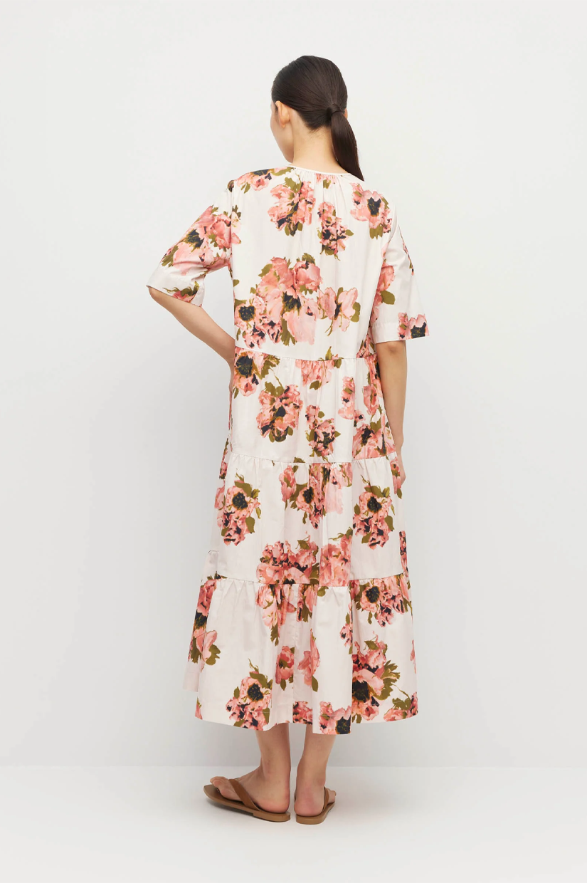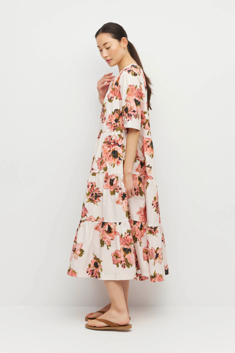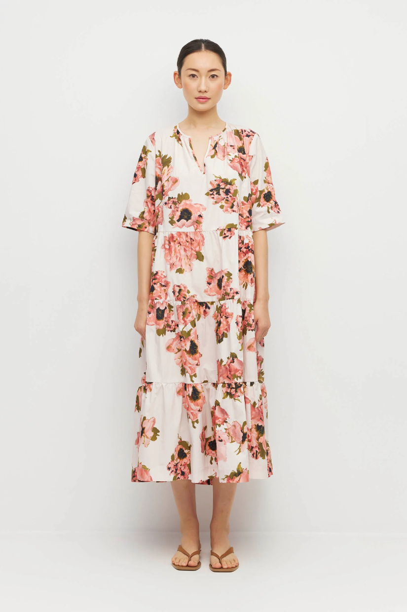 A classic JH style, the Forever Tunic is a midi tiered dress in cool easy-care 100% Cotton. This JH custom print design, Ruffled Tulips, is perfectly paired with sandals for the day, or with heels for the evening.