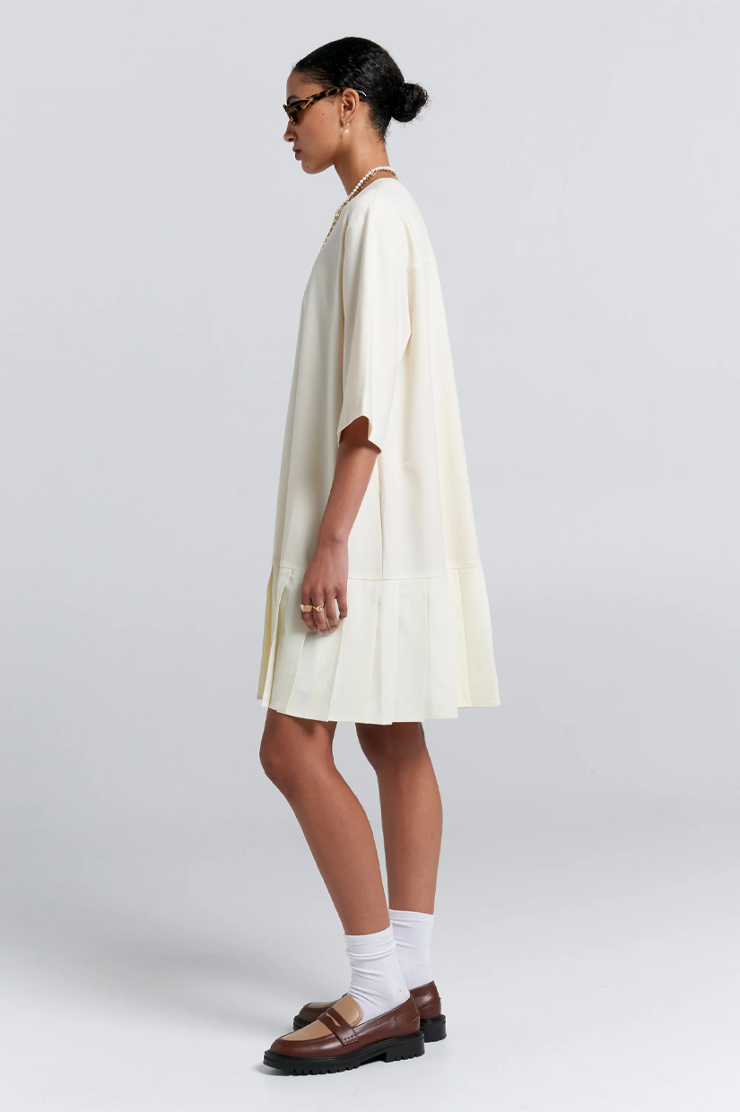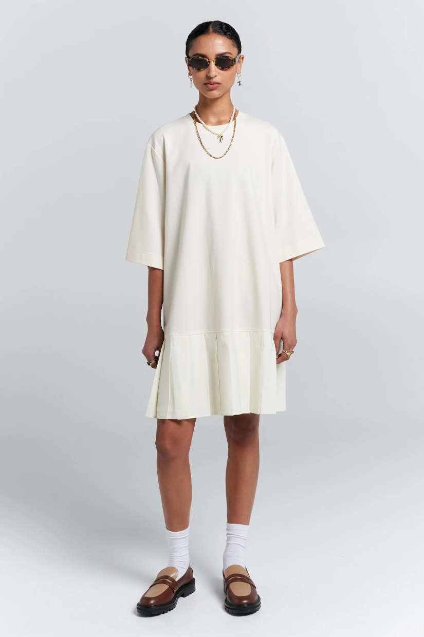The Rally Dress combines a classic boxy t-shirt silhouette with a neat pleated skirt, creating a modern yet elegant shape. With its easy-to-wear silhouette and sporty detailing, the Rally Dress offers playful elegance. The athletic knit fabric ensures the dress retains its shape, offering both comfort and structure.