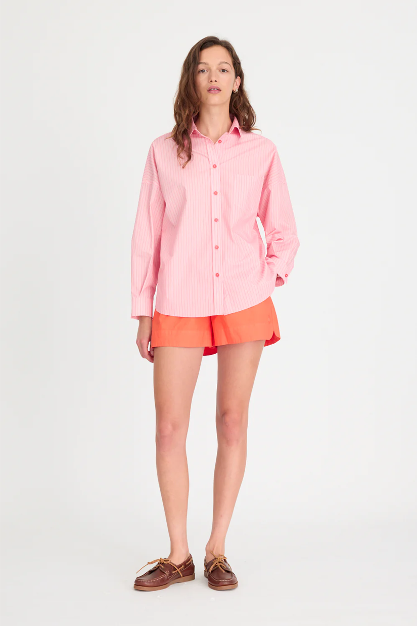 LMND Chiara Long Sleeve Shirt Pinstripe - Pink/Spicy Orange