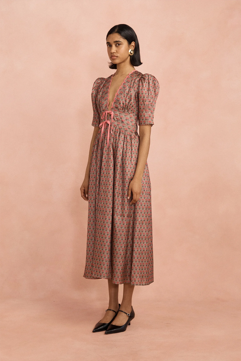 Lovaan Val Midi Dress - Cacao Spot