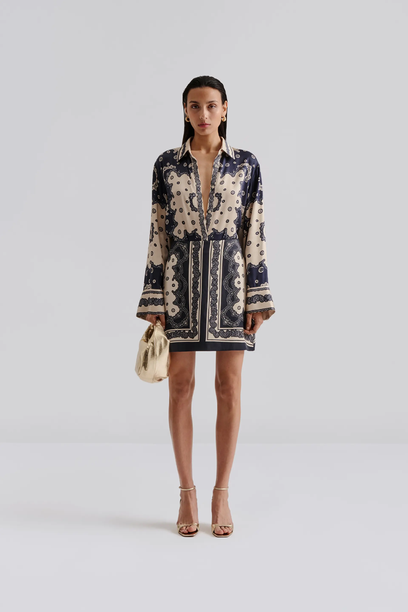 Karen Walker Theia Smocked Mini Dress - Navy/Navy