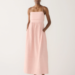 This sleeveless dress is refined yet quietly architectural. Crafted from textured jacquard with a structured, fitted bodice that releases into a softly gathered waistline. Finished with statement pouch pockets, a deep hem, and a concealed back zip, it strikes a balance between sculptural form and ease.