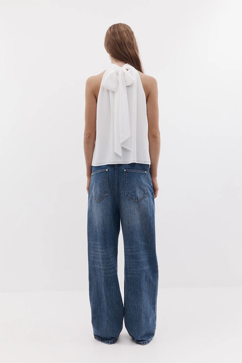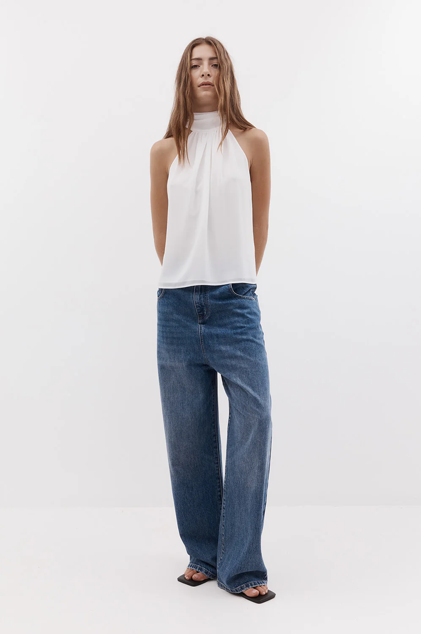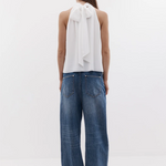 The Vera Top is crafted from a lightweight crepe, softly gathered to create a relaxed, floaty fit. This halter silhouette can be worn front or back, with long neck ties that can be knotted or left to drape for versatile styling.