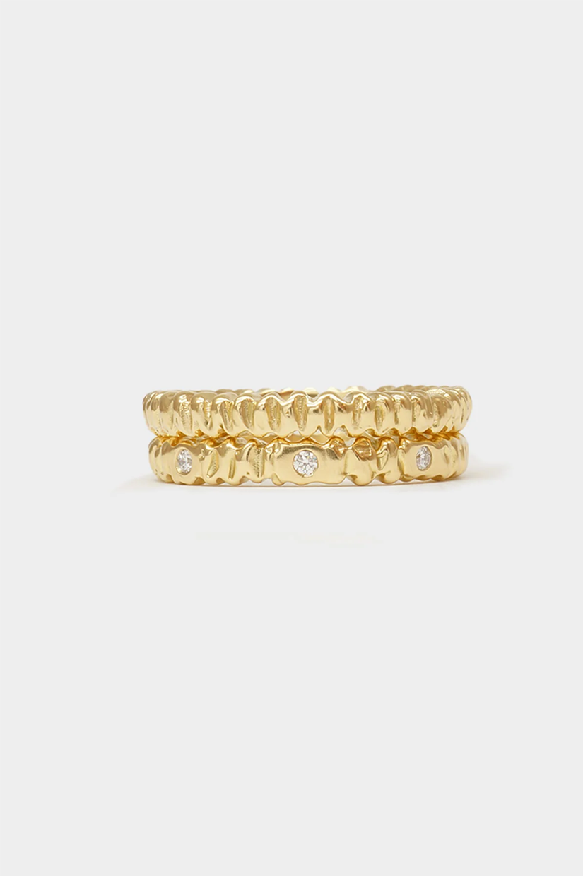 Hand carved molten band in Alexandra Dodds's signature texture, set with 5x flush white diamonds. Perfect worn alone, stacked with other pieces, or as an alternative wedding ring.