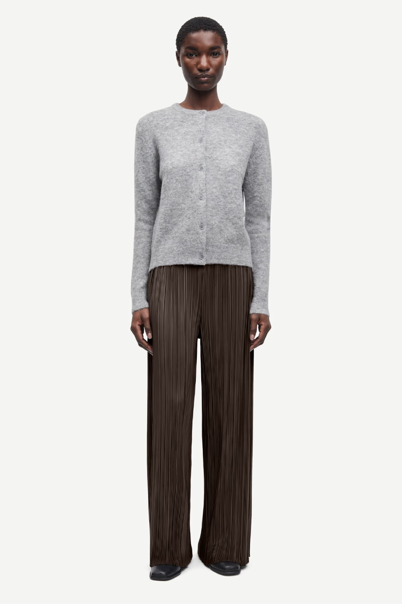 Finely pleated jersey trousers with a loose fit and wide leg. Elasticated waistband. Side slit pockets. Main material made from a recycled polyester-blend. This product is GRS certified. Each stage of the supply chain has met strict social, environmental, and chemical requirements.