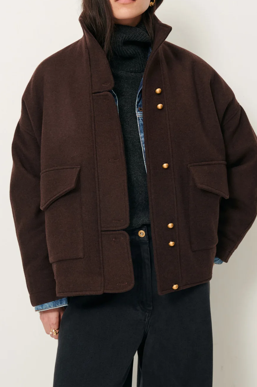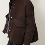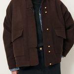 Short blouson-style coat in velvet-finish double weave Melton, woven in Italy.