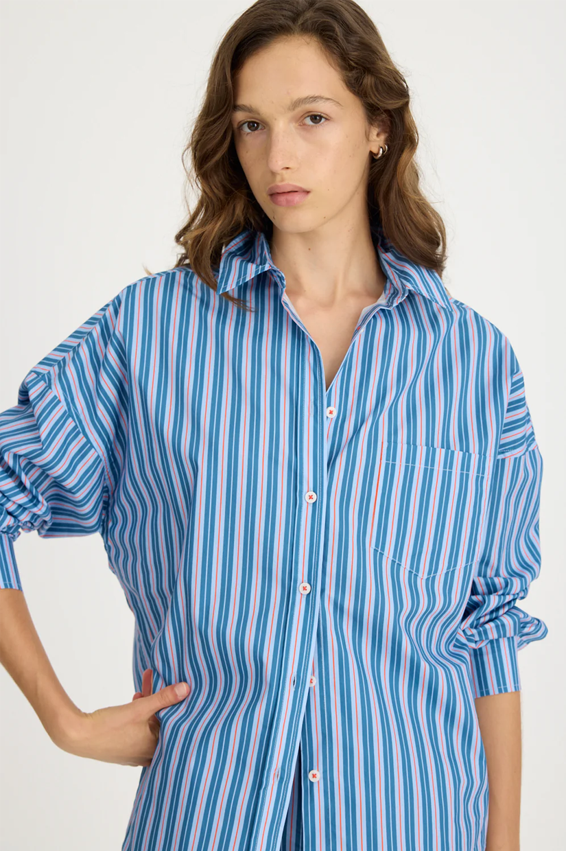 LMND Chiara Long Sleeve Shirt Multi Stripe - Real Teal/Spicy Orange/Blue