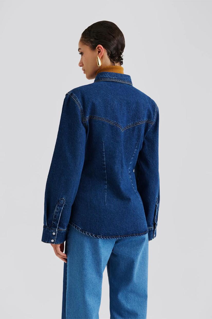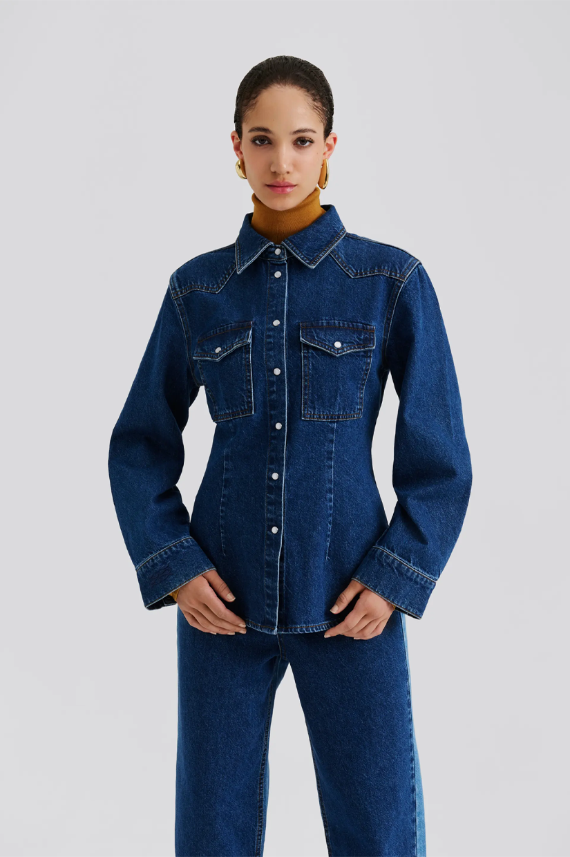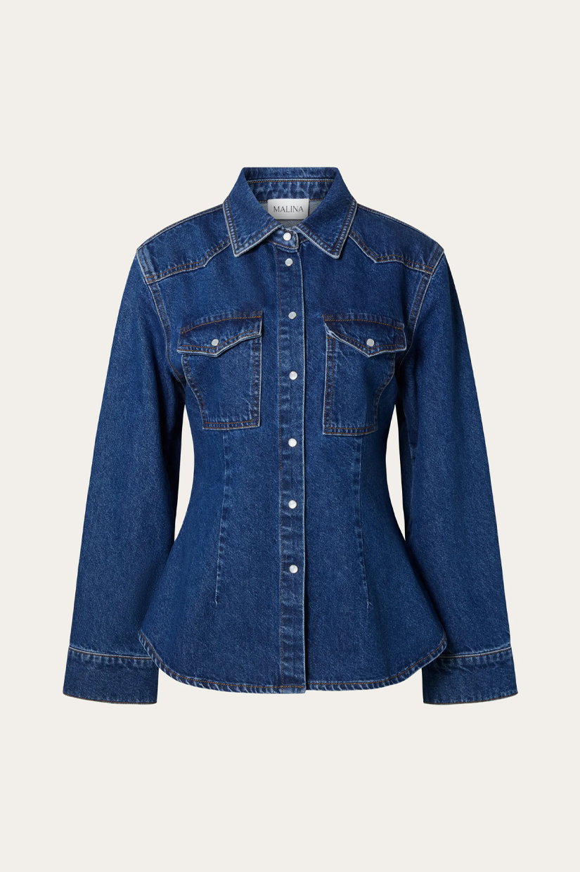 Malina Anthea Fitted Waist Denim Shirt - Dark Blue Wash