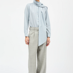 Dalia Bow Shirt is a feminine and chic take on a traditional blouse. The double layer scarf that forms the collar can be tied into a large bow at the front or left as a free-flowing scarf. The shirt is made from 100% organic cotton and has buttons at the front and cuffs.