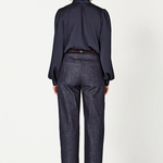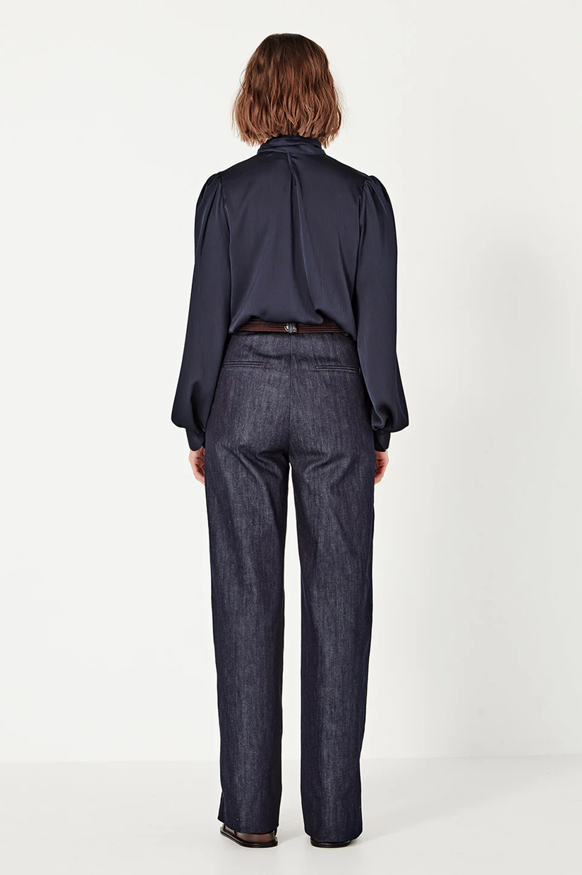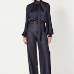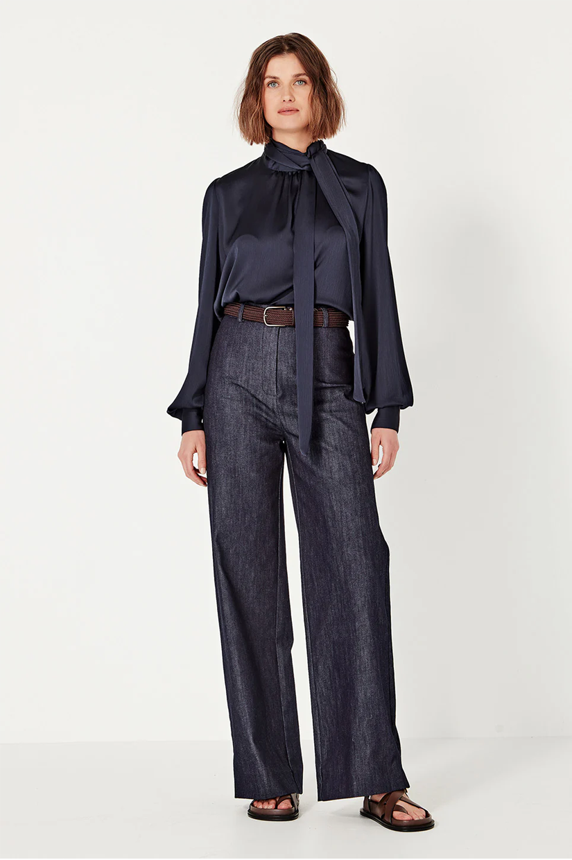 A must-have in every woman's wardrobe, the Bowie Blouse is chic, effortless and versatile. This season its cut in a stunning, easy care, wash and wear texture with a beautiful fluid drape and loose fit, the Bowie is defined by a high neck shaped with long ties that can be styled in a multitude of ways, front or back. Gentle gathers at the shoulder and cuff create soft volume. Style with a high waisted pant and heels to tap the glam-rock influences. Wear under your suiting at the office, or tuck into a flowing skirt or trouser for events.