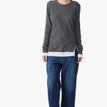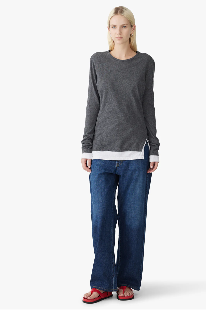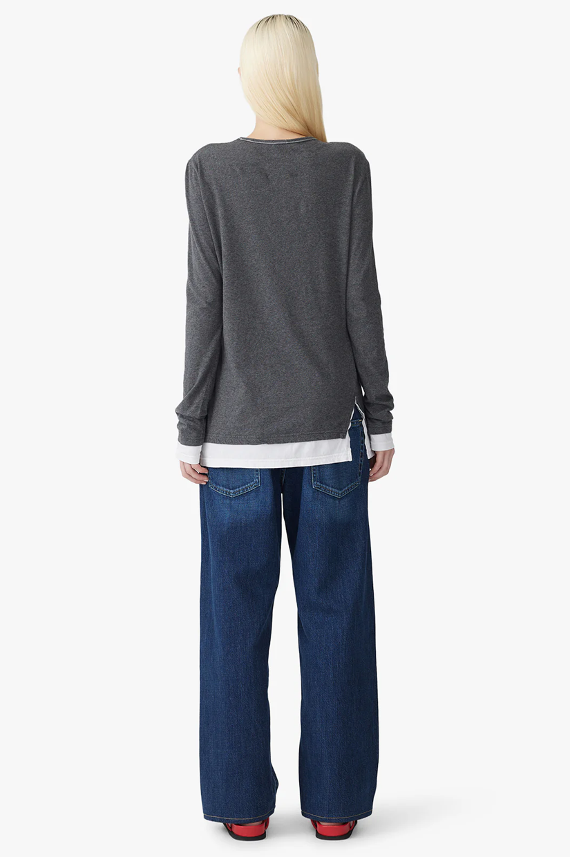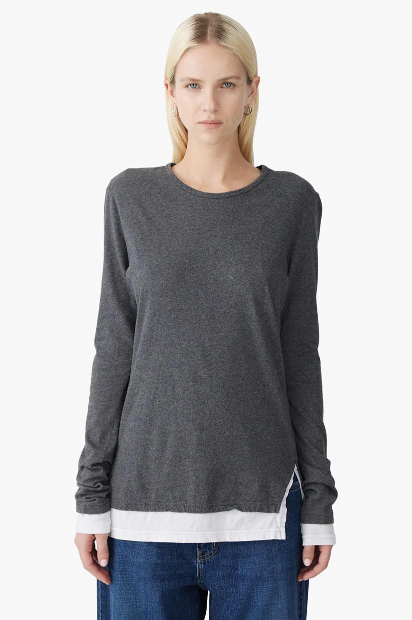 Bassike Split Layered LS T.shirt - Charcoal Marl/White