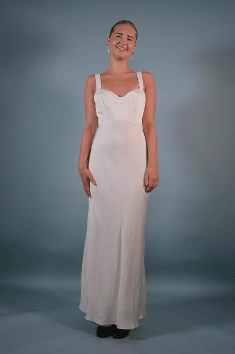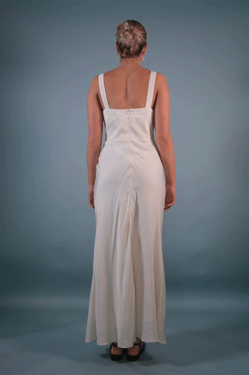Regina is a timeless yet playful dress inspired by the curvaceous female silhouette. The skirt is cut on the bias - making it fit and flatter easily.
