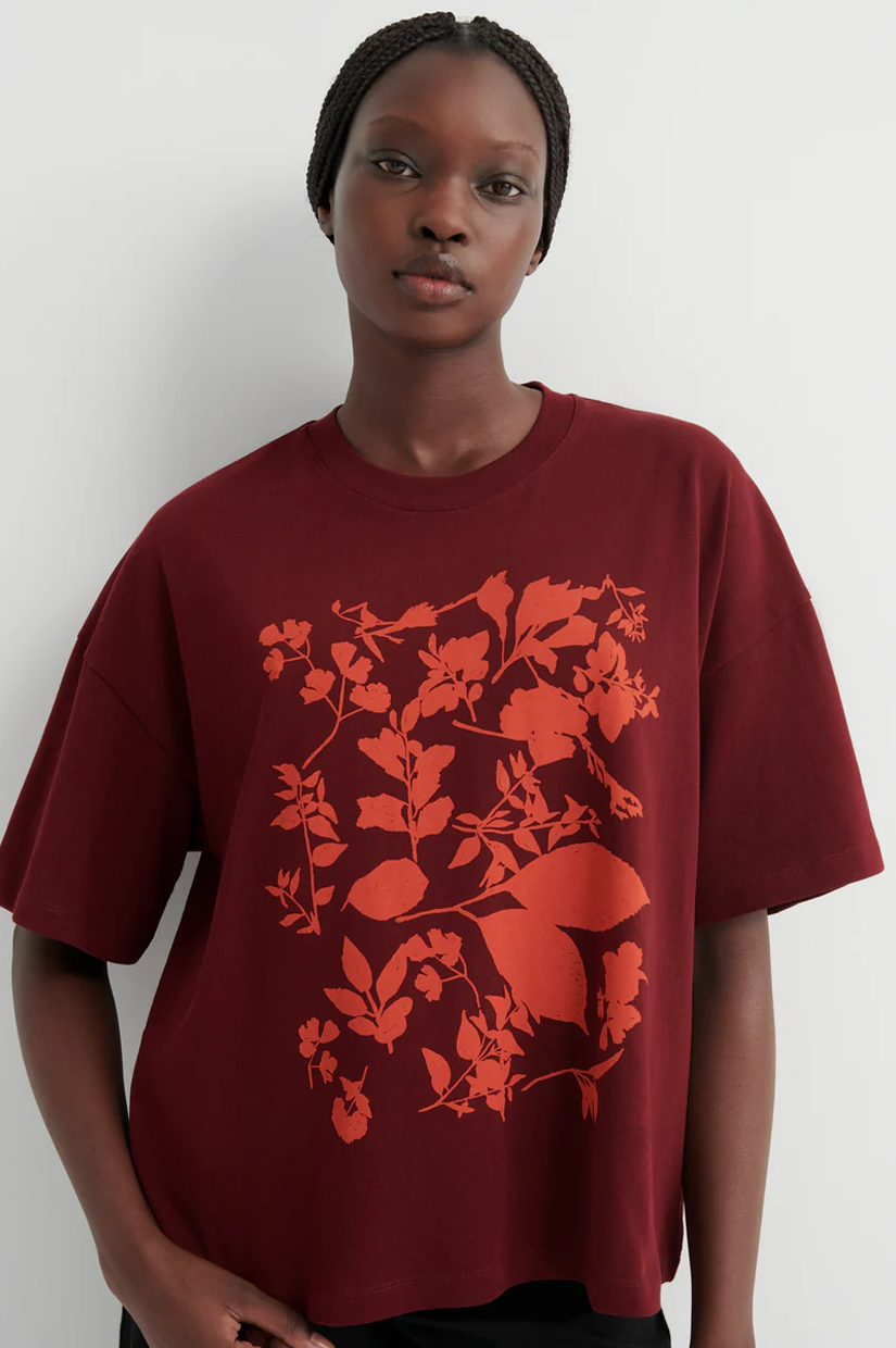 A short sleeve tee with a very oversized fit, finished with a classic ribbed crew neck. Our best-selling Oversized Boxy Tee in a heavyweight organic cotton jersey featuring a screen-printed pressed foliage motif.