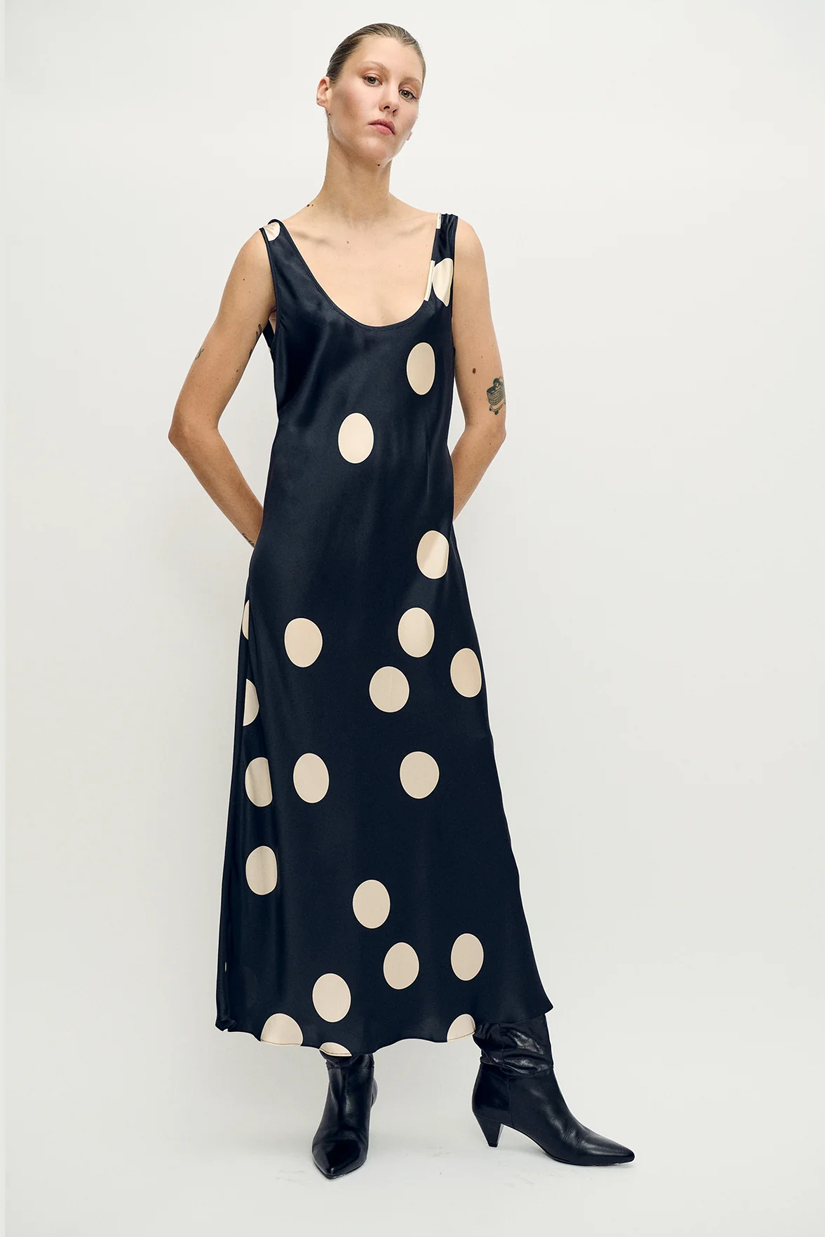 Silk Laundry Scoop Neck Dress - Large Polka Dot