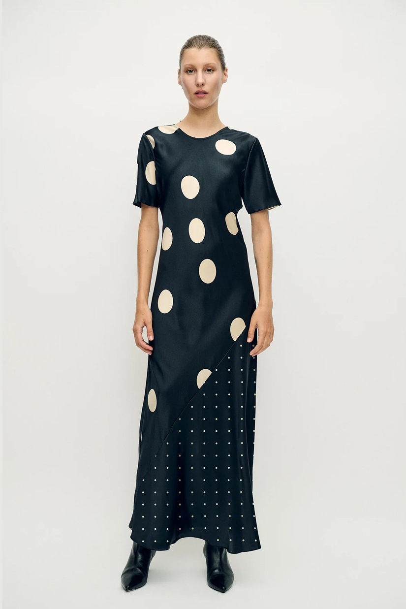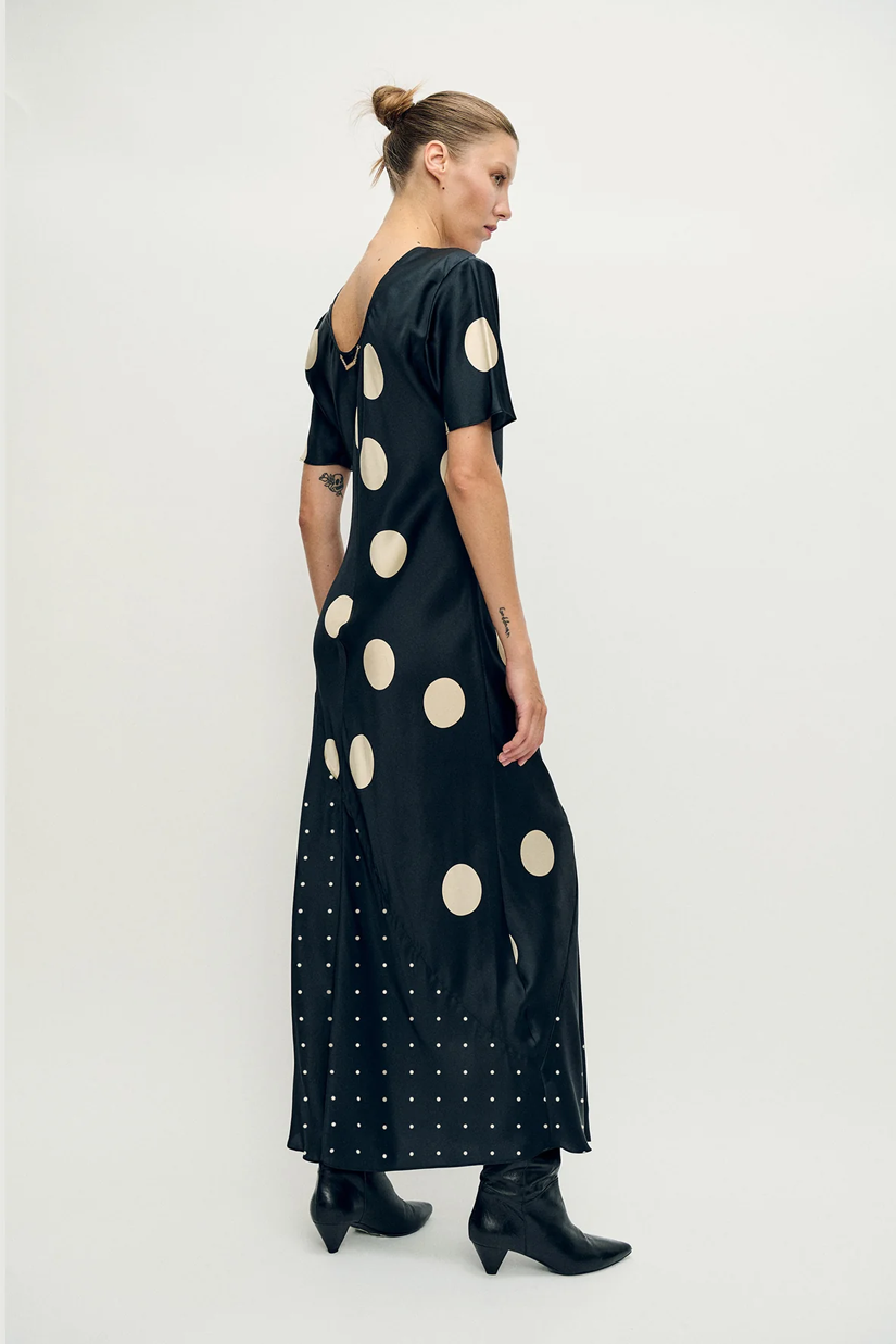 Silk Laundry Short Sleeve Bias Dress - Large Polka Dot