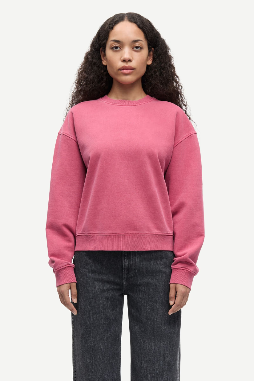 Long-sleeved jersey sweatshirt with a loose fit and dropped shoulders. Rib-knitted crew neck, cuffs, and hem. Embroidered Samsøe Samsøe branding at the sleeve. Main material made from 100% organic cotton.