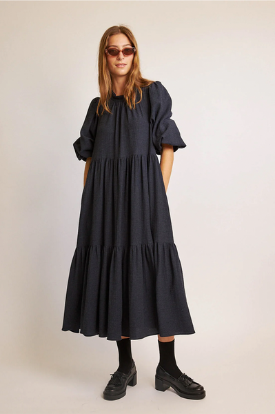 Silk Laundry Cotton Silk Tulip Dress - Black