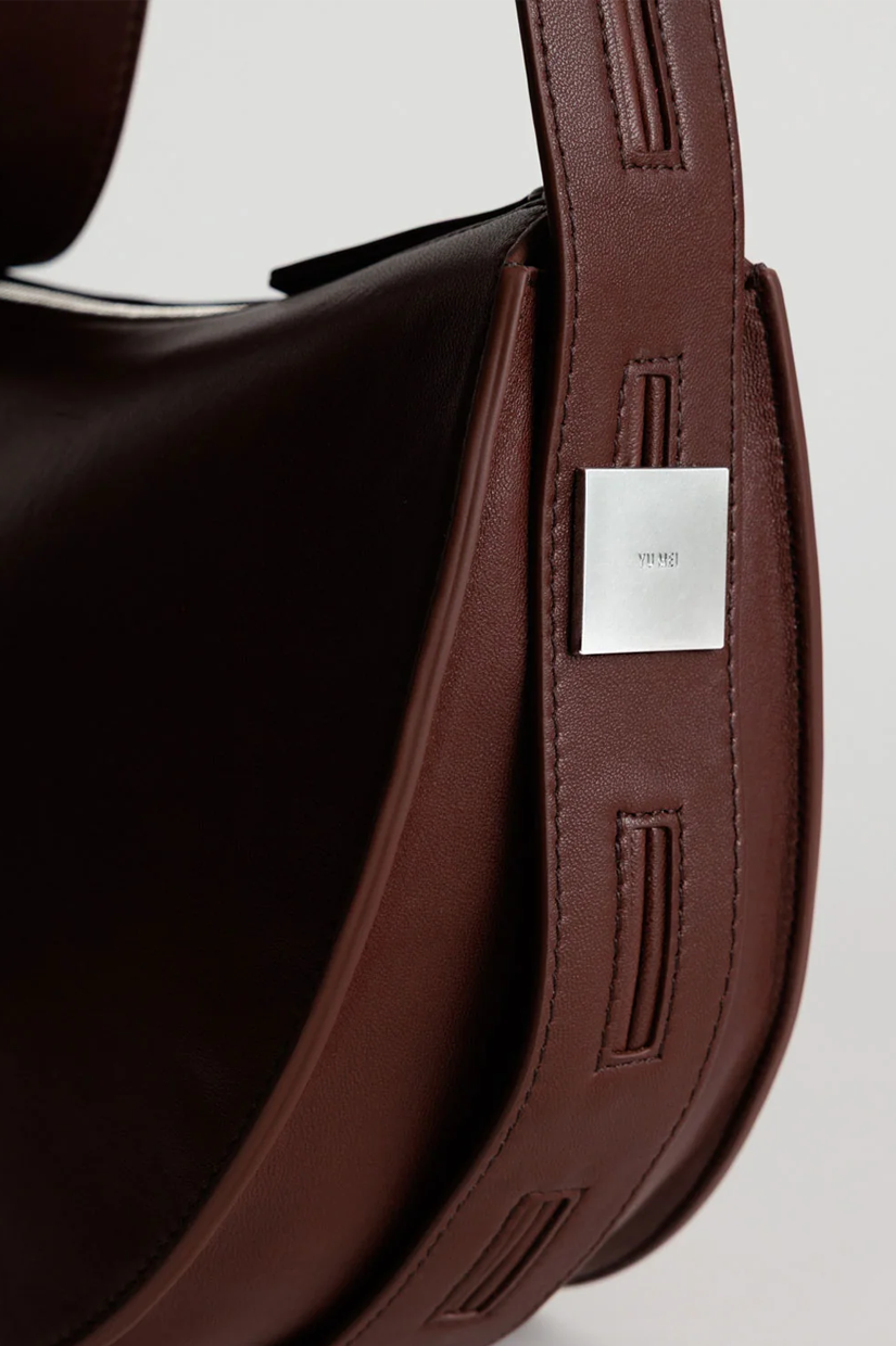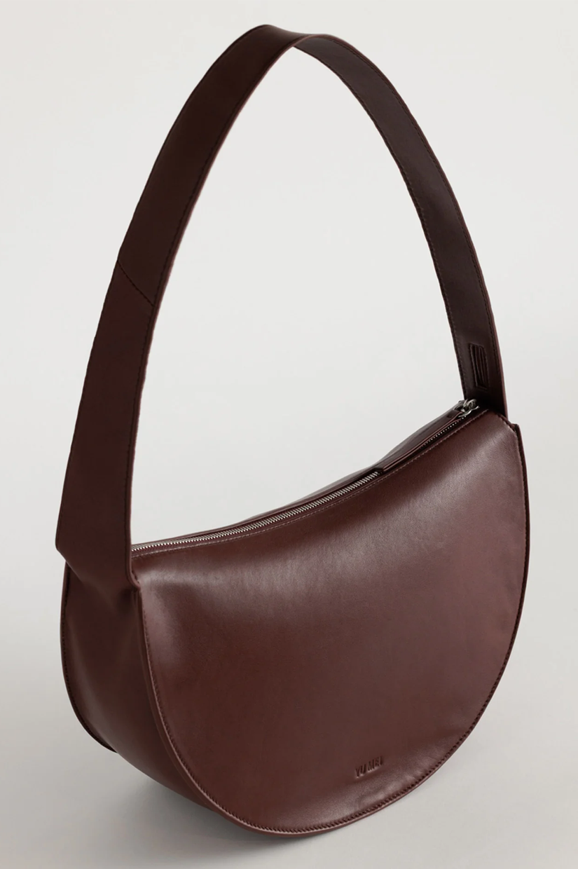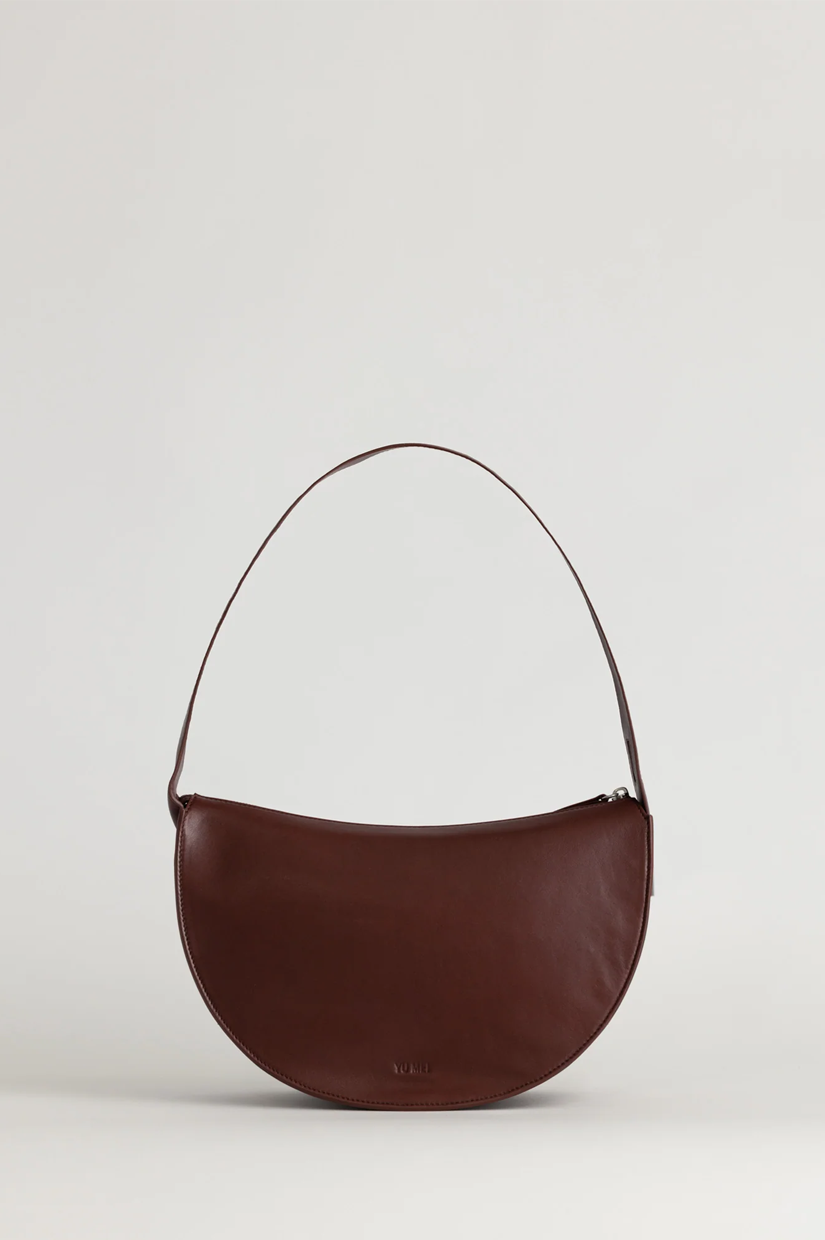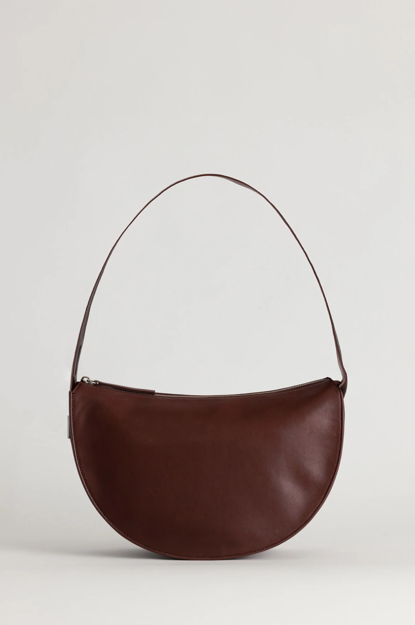 A deceptively well-proportioned half circle bag, fit for the tube or the town. Can be worn cross-body or shortened to baguette.