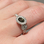 Alexandra Dodds Asymmetric Teeth Gem Ring - Silver Green Sapphire/Diamond