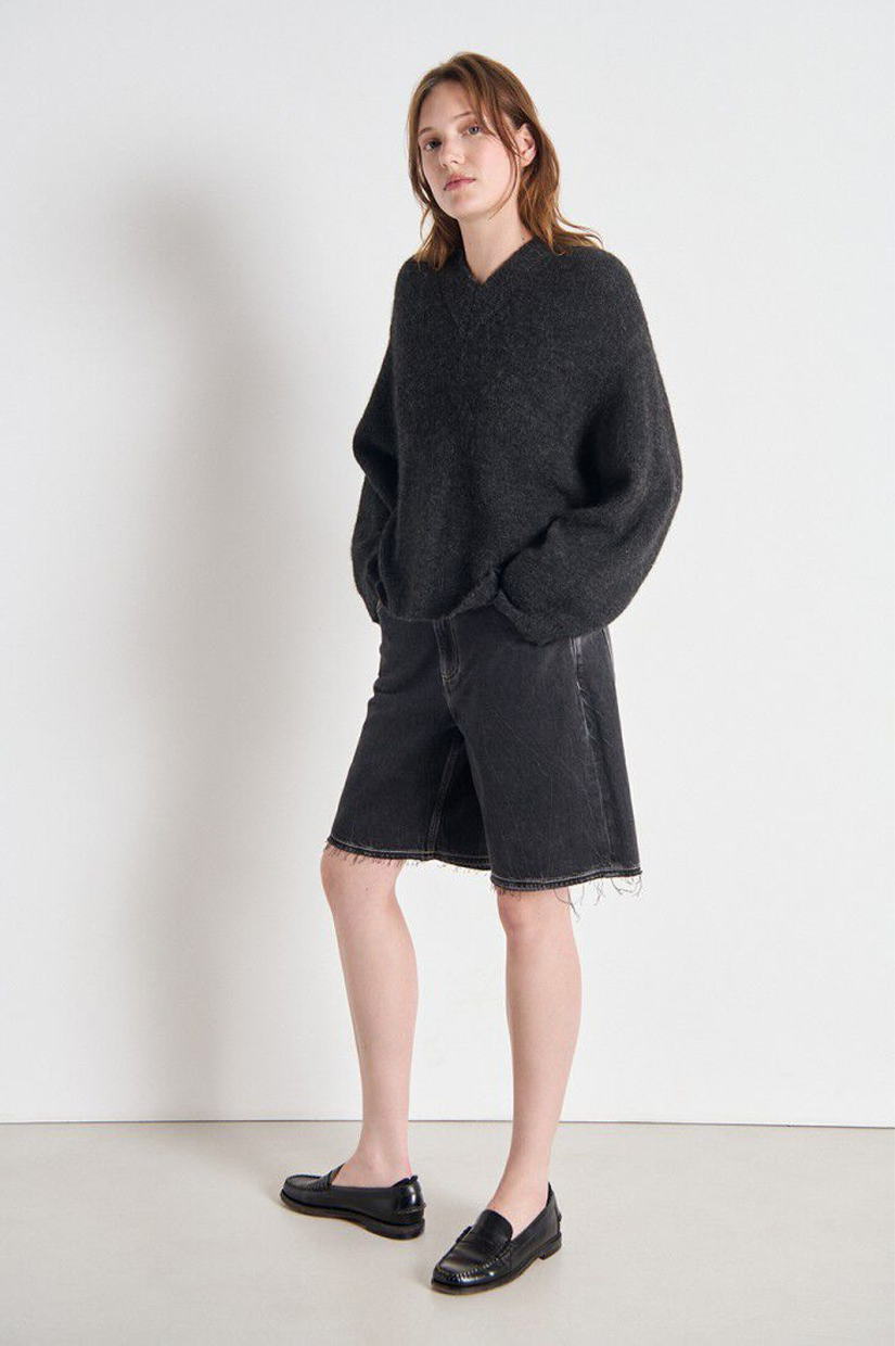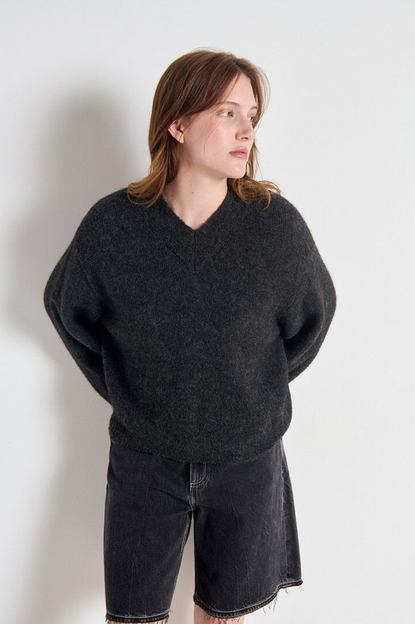 The East jumper is an iconic piece in the American Vintage wardrobe, recognisable by its loose fit, V-neck and generous knit. Made from a blend of Italian yarns, it will win you over with its premium, fluffy and cosy texture. Its thick knit and marl colours give it a timeless charm, combining cosy comfort with a casual look. Wear over a dress or shirt to subtly reveal the collar.