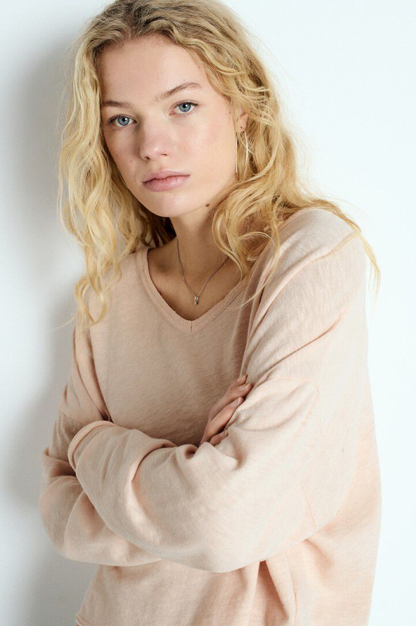 American Vintage Sonoma V neck LS T-shirt Vintage Biscuit