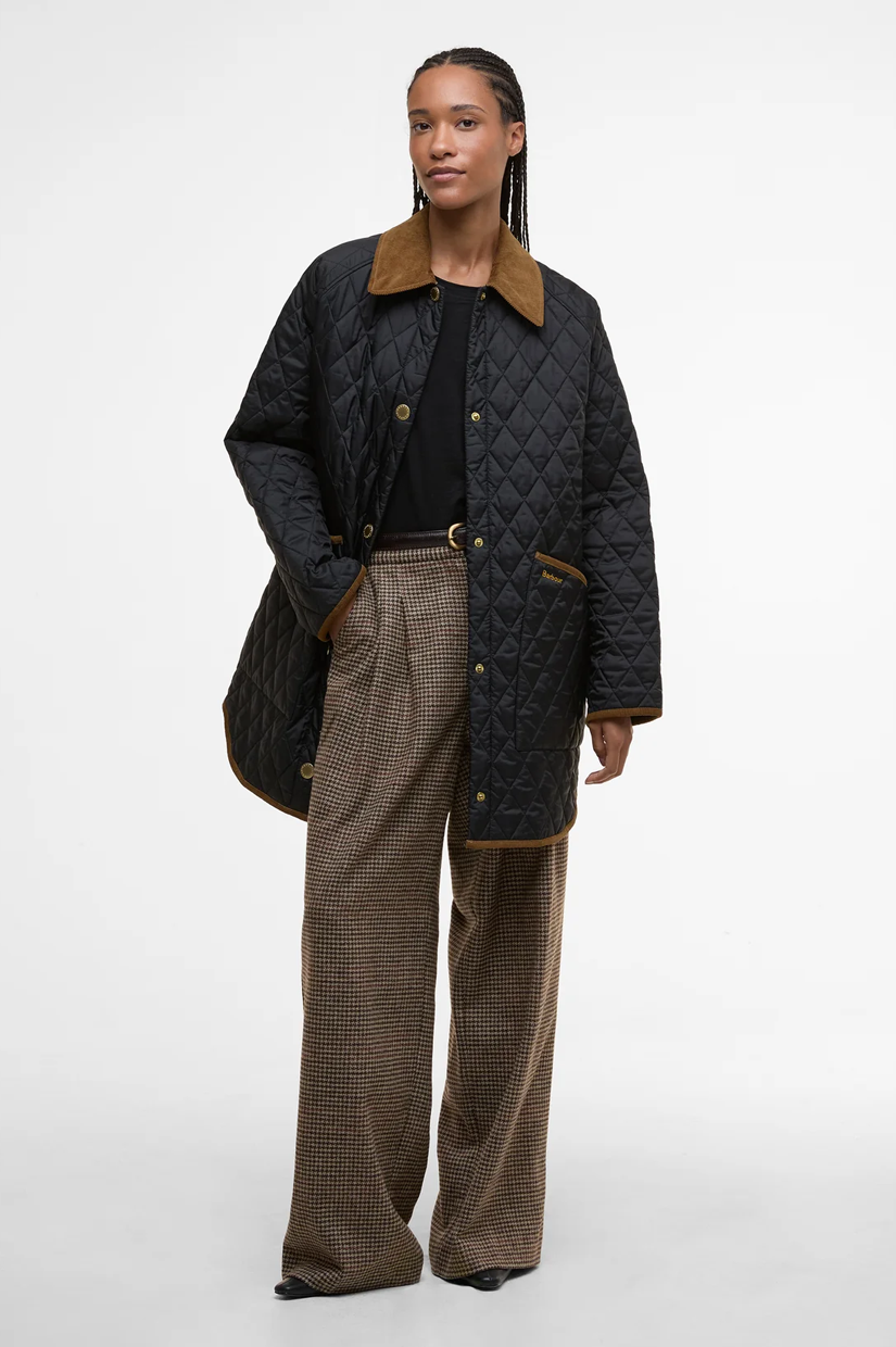 A true Barbour classic, the Liddesdale Quilted Jacket is renowned for its iconic diamond quilting and contrasting cord collar. This season, the Barbour Oversized Liddesdale Quilted Jackets puts an oversized twist on this signature silhouette. It fastens with large branded studs through the centre front and is detailed with a chunky oversized cord collar, signature Liddesdale pockets and a contrast lining.