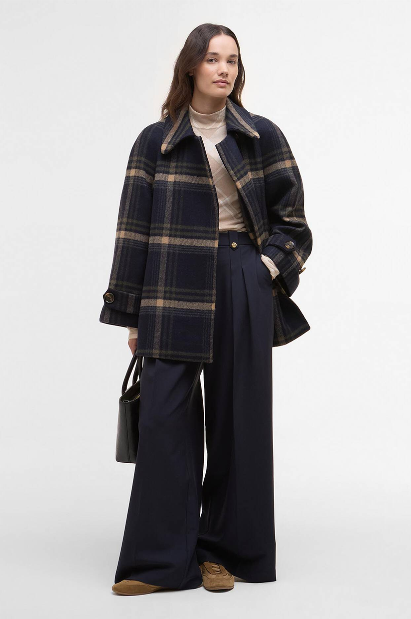 Barbour Tara Wool Coat Navy Windowpane Check