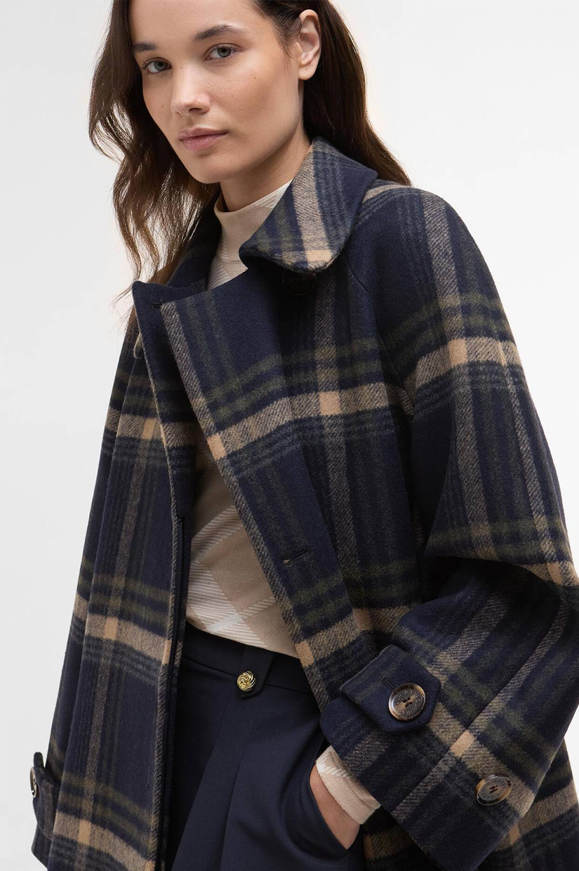 Barbour Tara Wool Coat - Navy Windowpane Check