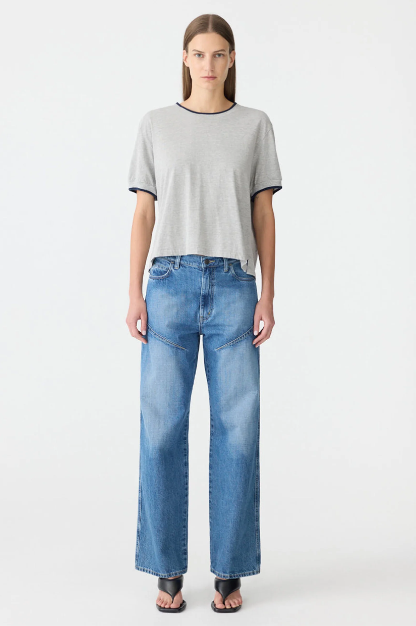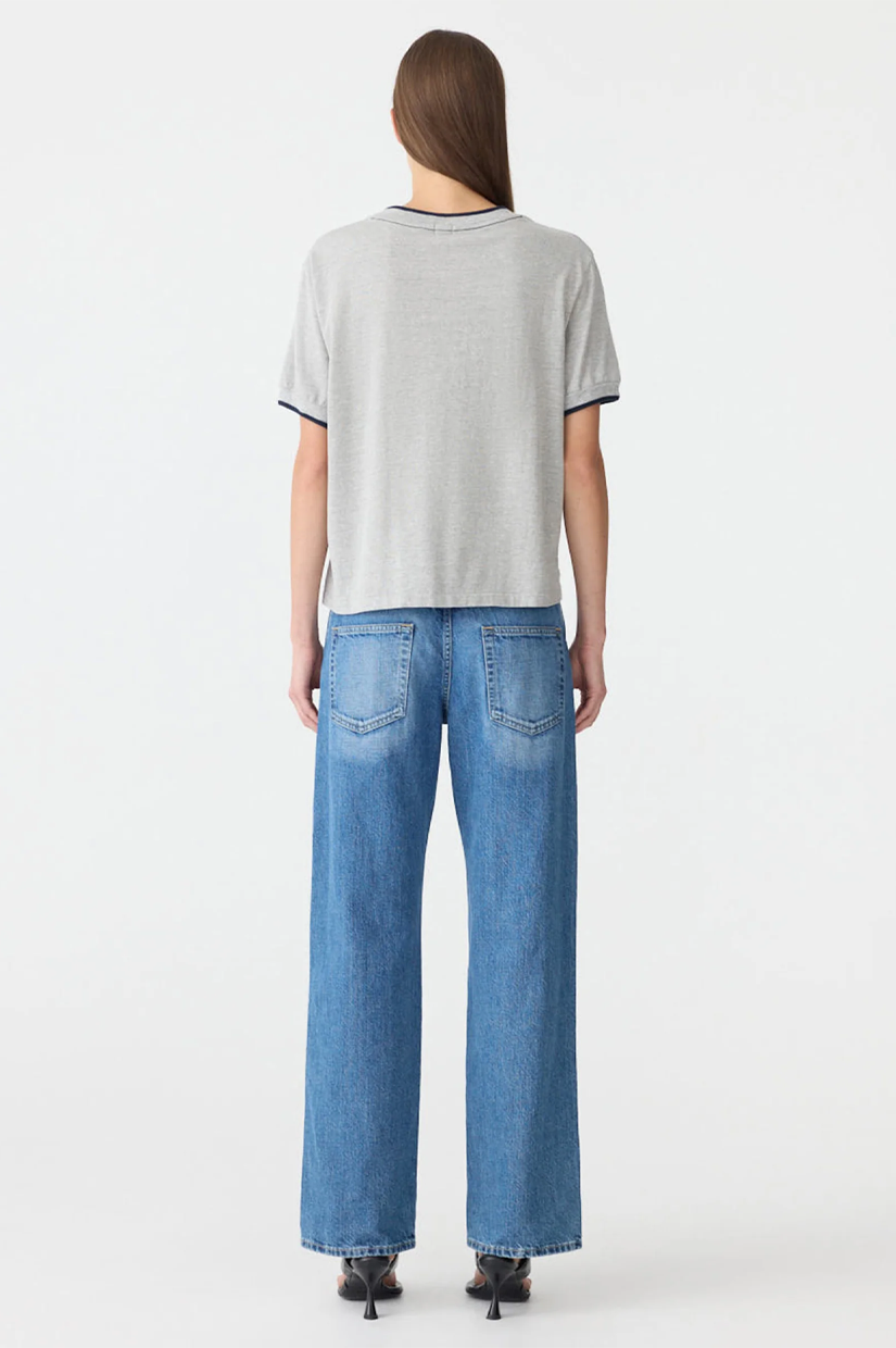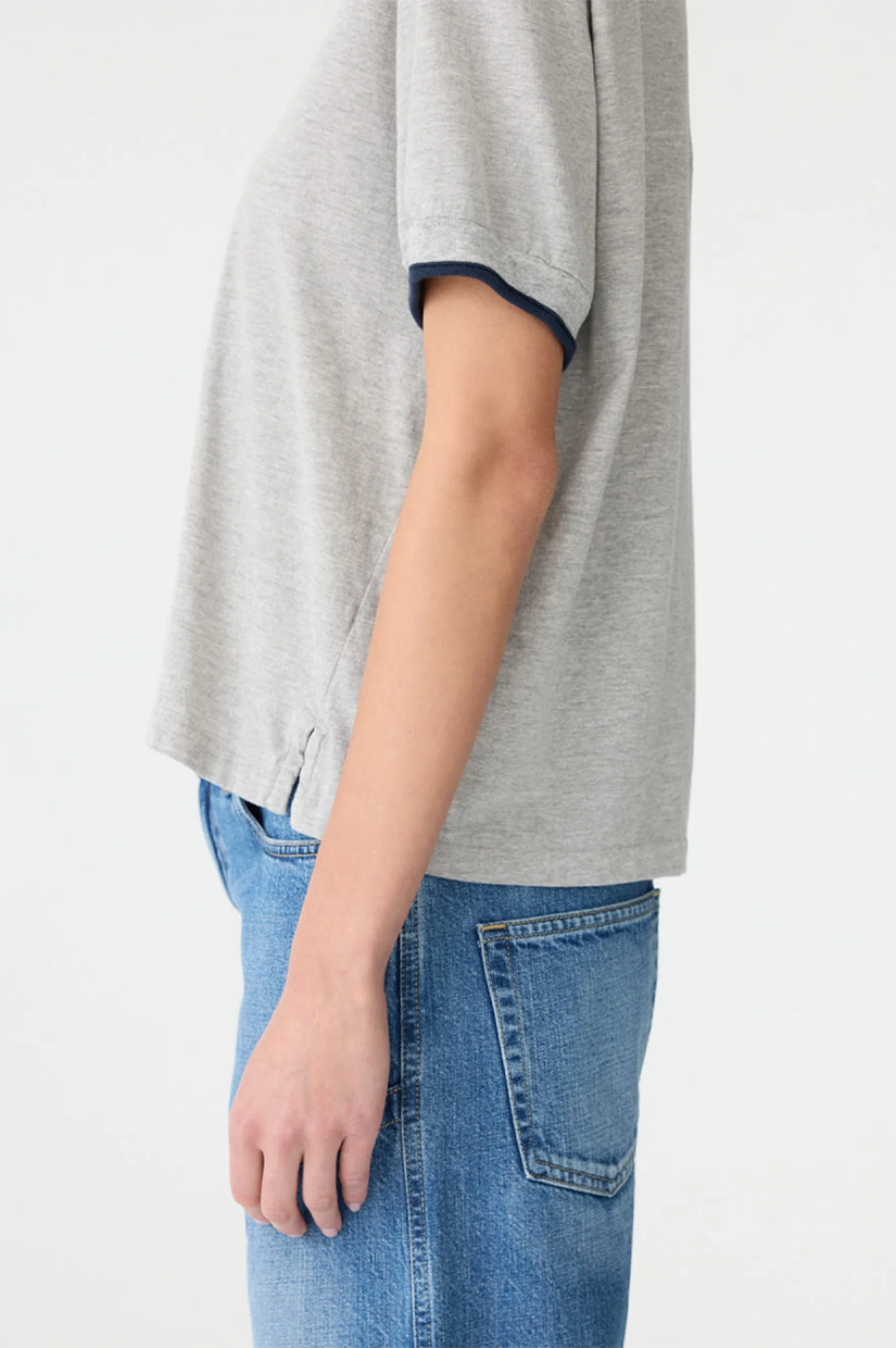 Bassike Layered Neck T-shirt - Greymarle/Blue Ink