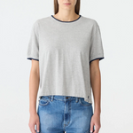 Bassike Layered Neck T-shirt Greymarle/Blue Ink