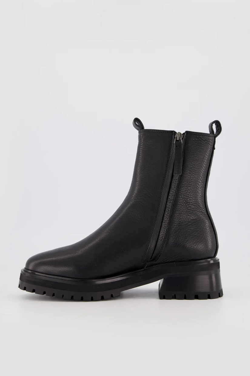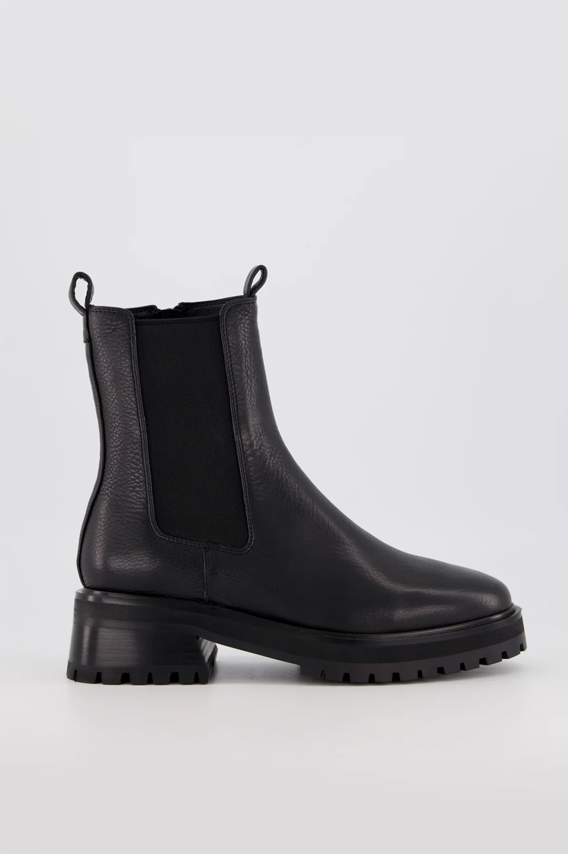 Cleo is a sophisticated Chelsea Boot with an elevated edge. A cleated sole, slightly flared heel and chunky EVA midsole give the style a contemporary point of difference. Feature pull tabs enhance our modern-take on the classic silhouette, while an inside zip allows for easy on and off.