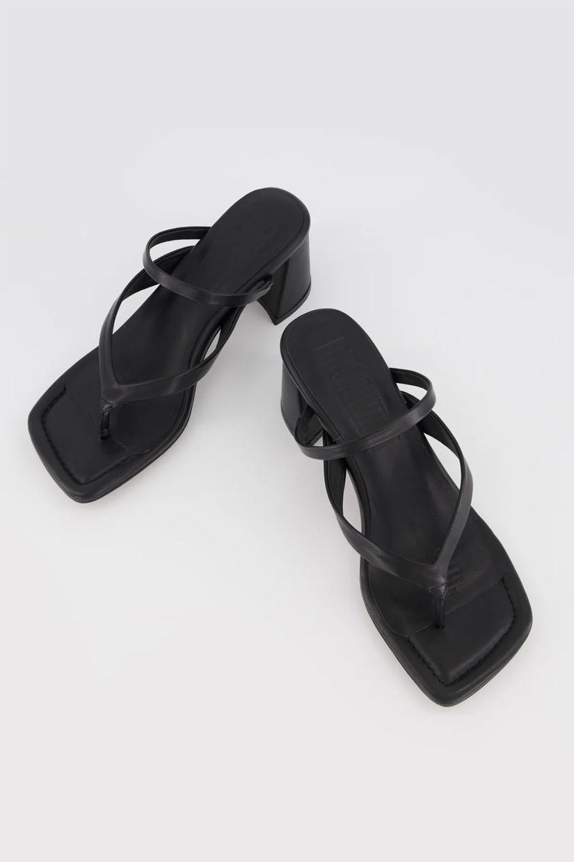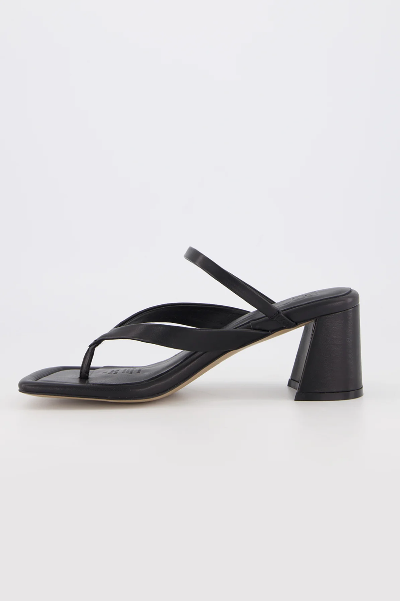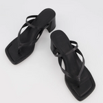 An update of our archive sell-out sandal Winona, Lottie is our 90s toe-thong sandal of dreams. A modern square toe balances perfectly with the jandal style strap, while a top strap with elastic holds your foot supportively, easing the pressure between the toes that traditional heeled thongs often have. A mid-height block and underfoot padding creates continuous comfort for endless wearability.