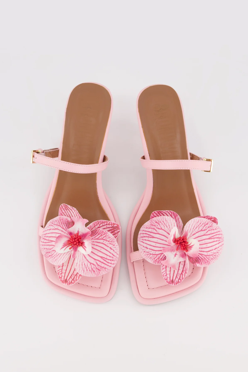 Our best selling event-ready sandal Lou Lou returns with a resort refresh, with a removable orchid trim offering both versatility and aesthetics in fresh summer hues. Designed for comfort and versatility, Lou Lou Orchid features two fine straps and a perfectly balanced heel to carry you effortlessly from day to night. Wear her without the orchid for understated minimalism or add the orchid on either strap for a statement finish to punctuate a multitude of ensembles.